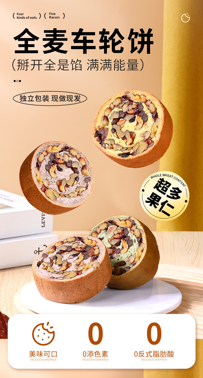 【现做现发,全麦面包超多果仁】全麦面包果仁车轮坚果大列巴,结实不松垮口感超好,满满能量粗粮早餐面包欧包饼零食吐司不单独添加蔗糖独立包装QQ