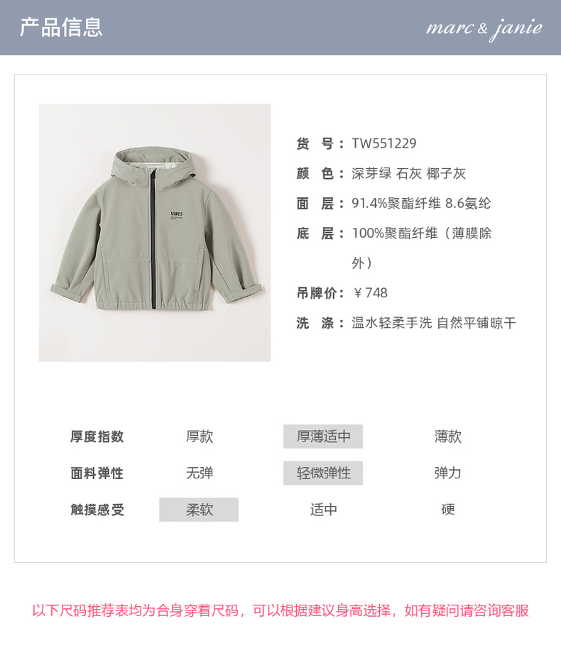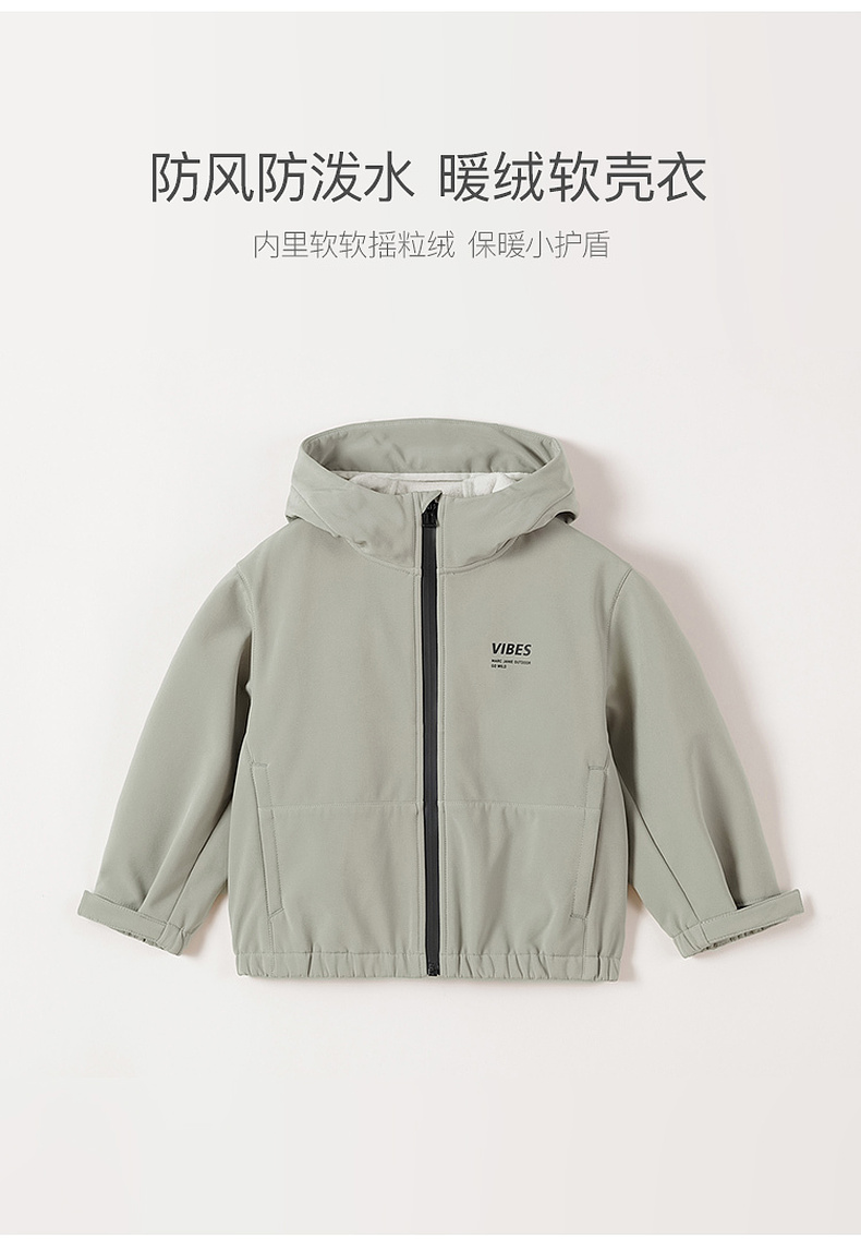 【无氟防泼水】马克珍妮男童防风保暖加绒软壳外套2025年秋冬新款551229