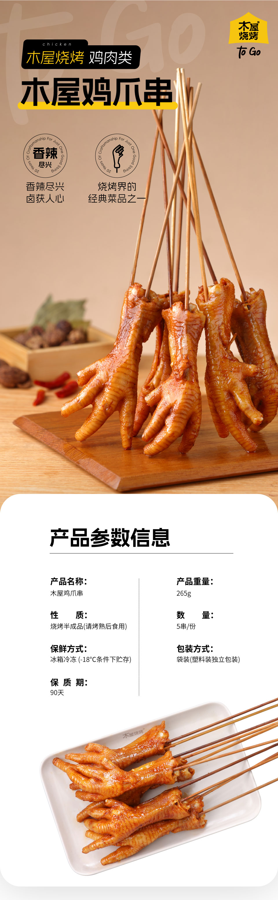 鸡爪串(5串/约265克,半成品食材)