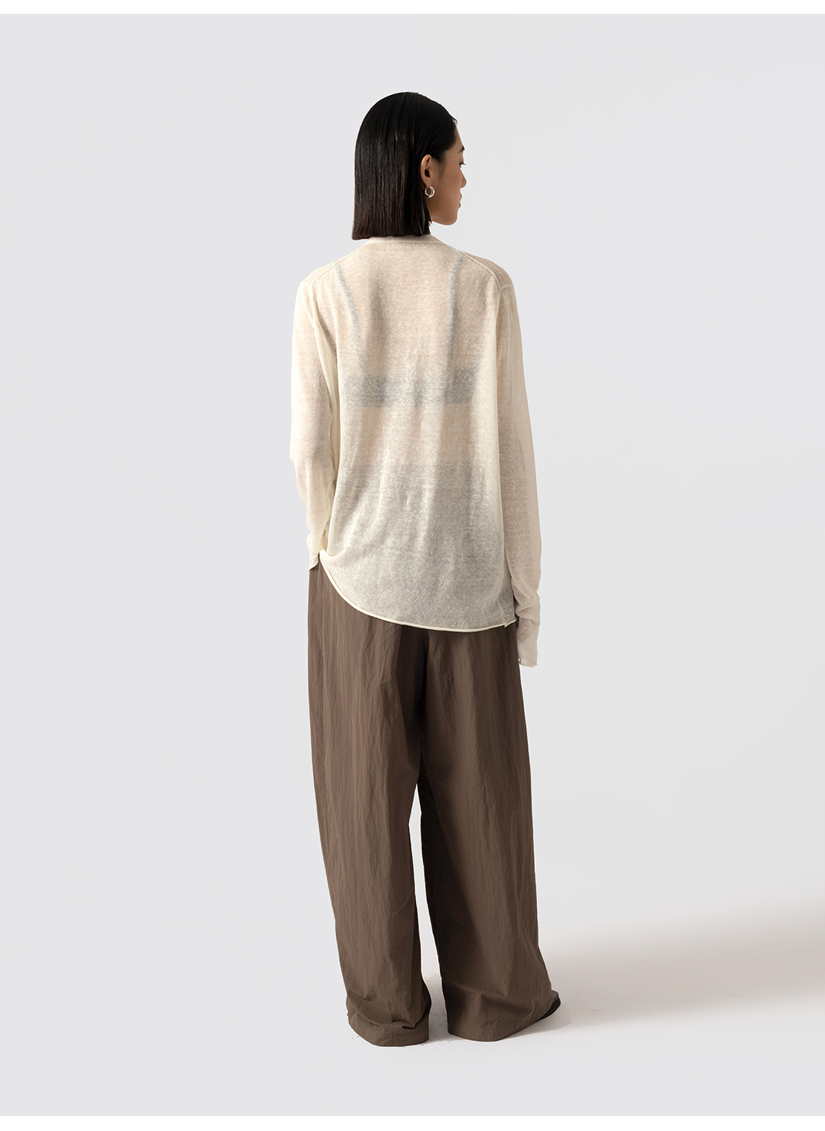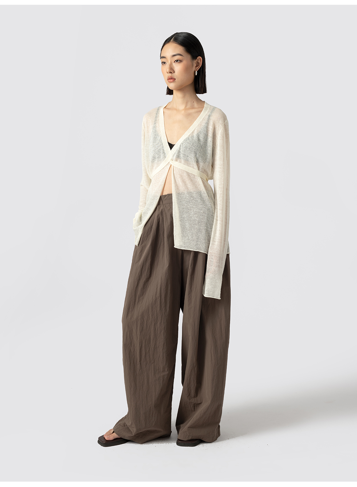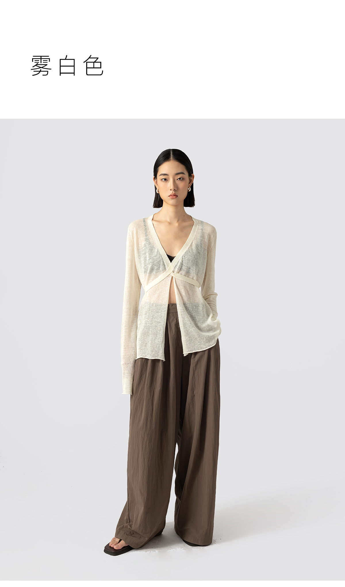 322工房纯粹亚麻女士长袖针织防晒开衫2023夏系带V领空调衫女B096