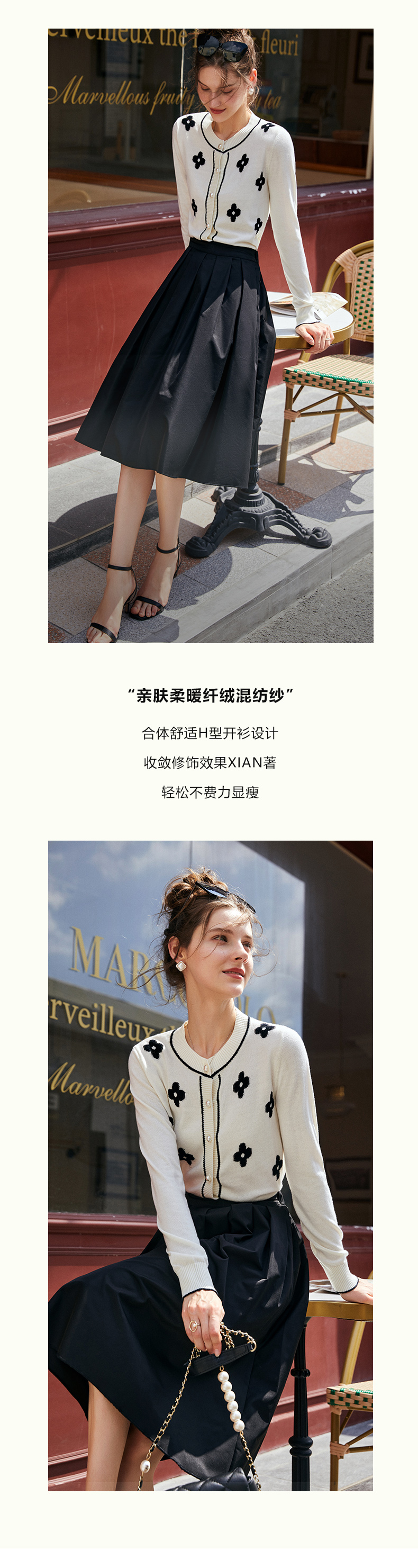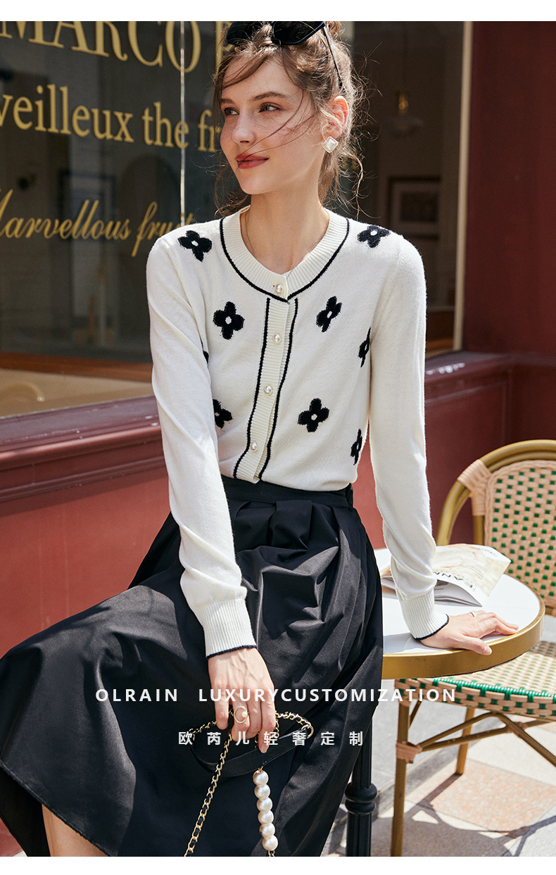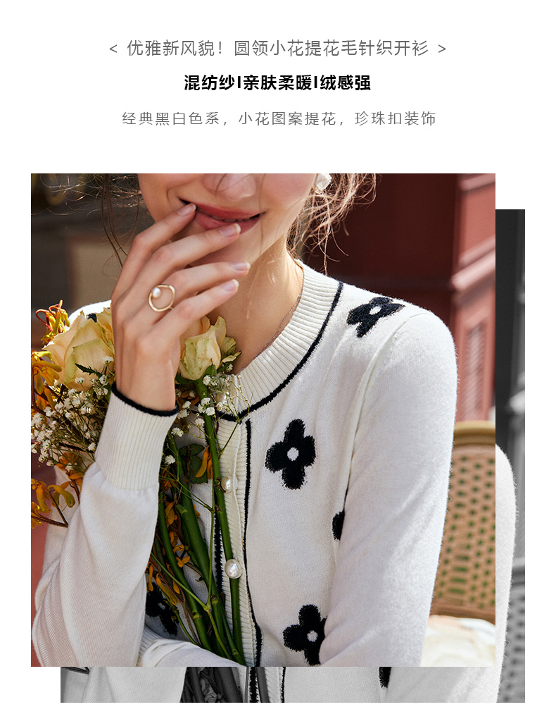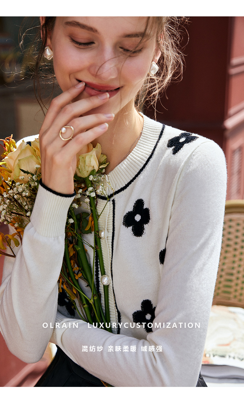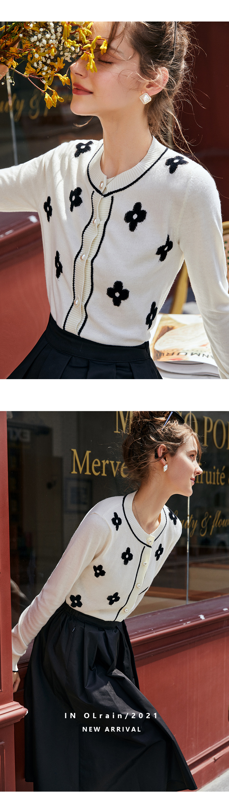 欧芮儿白色开衫毛衣女新款2021修身显瘦洋气复古圆领针织上衣