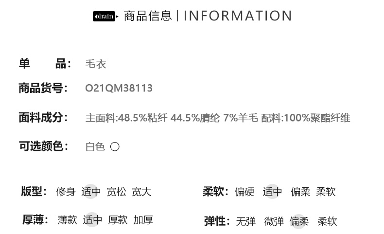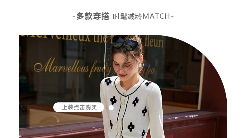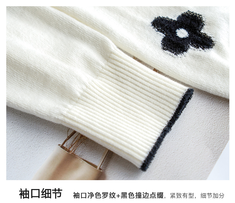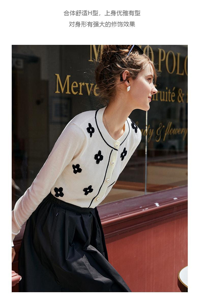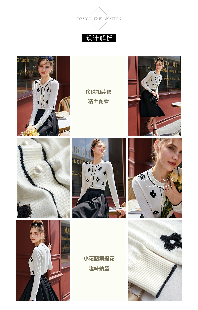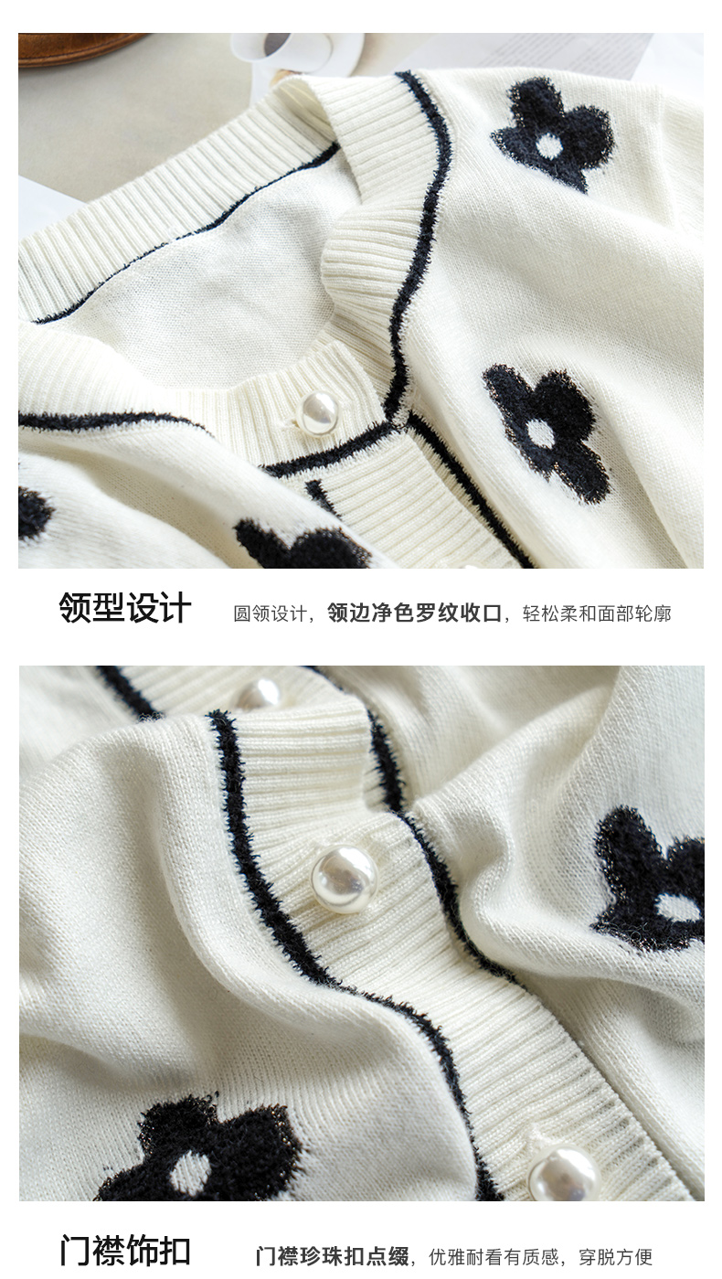 欧芮儿白色开衫毛衣女新款2021修身显瘦洋气复古圆领针织上衣