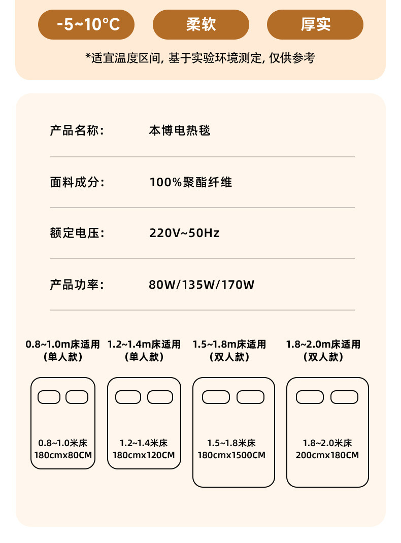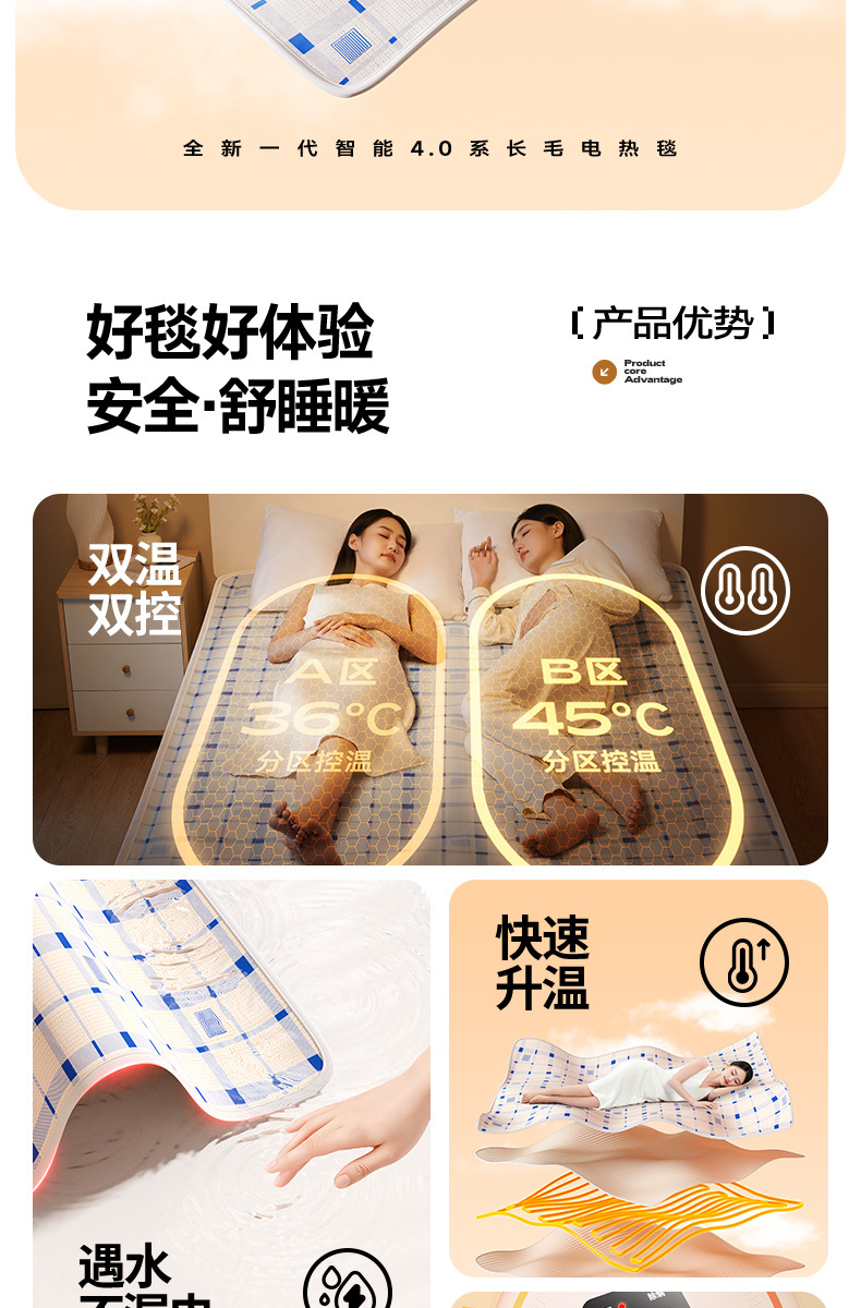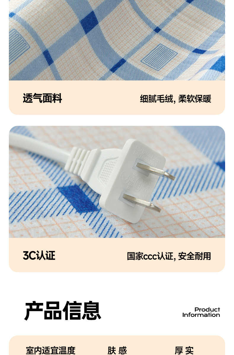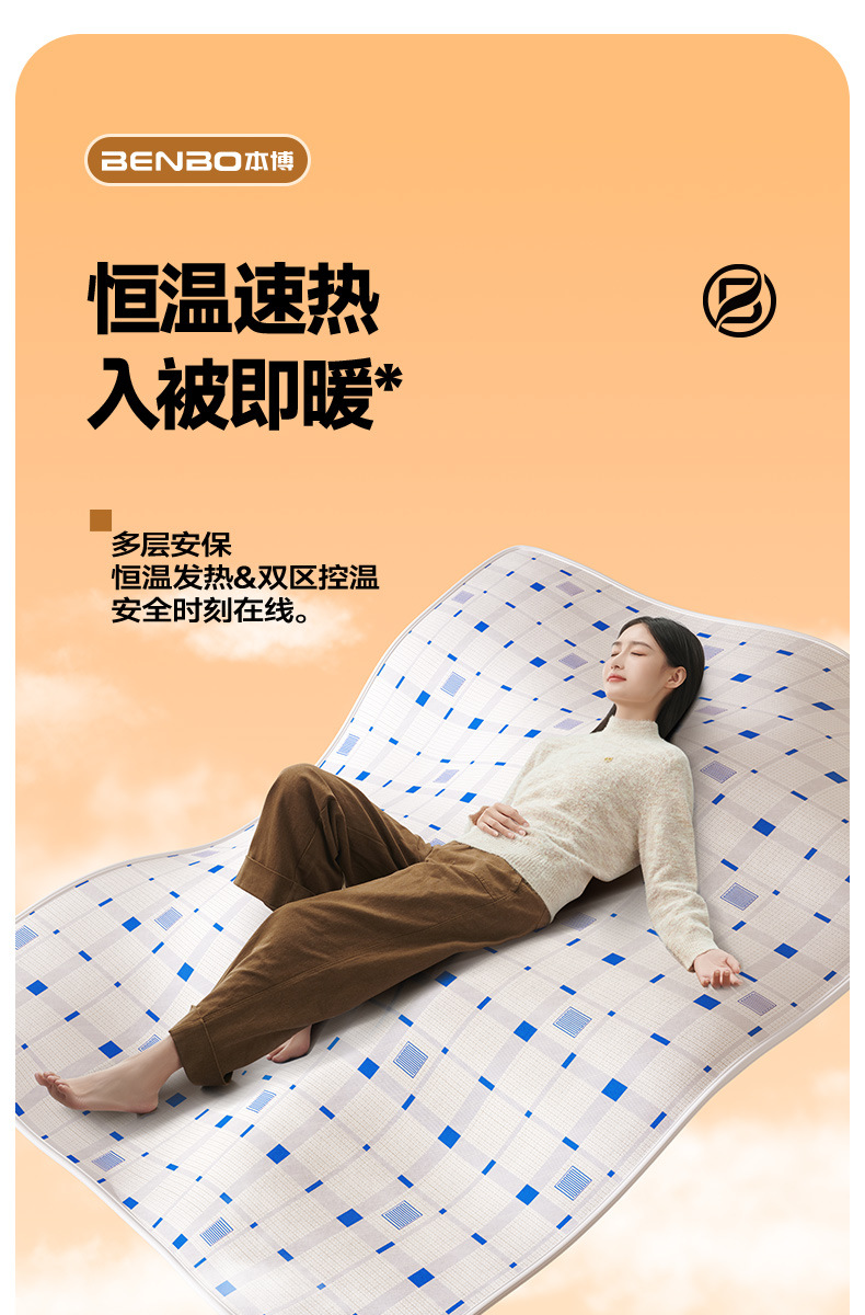 【秋冬电热毯电褥子】安全调温家用学生宿舍家用 3C认证石墨烯加热