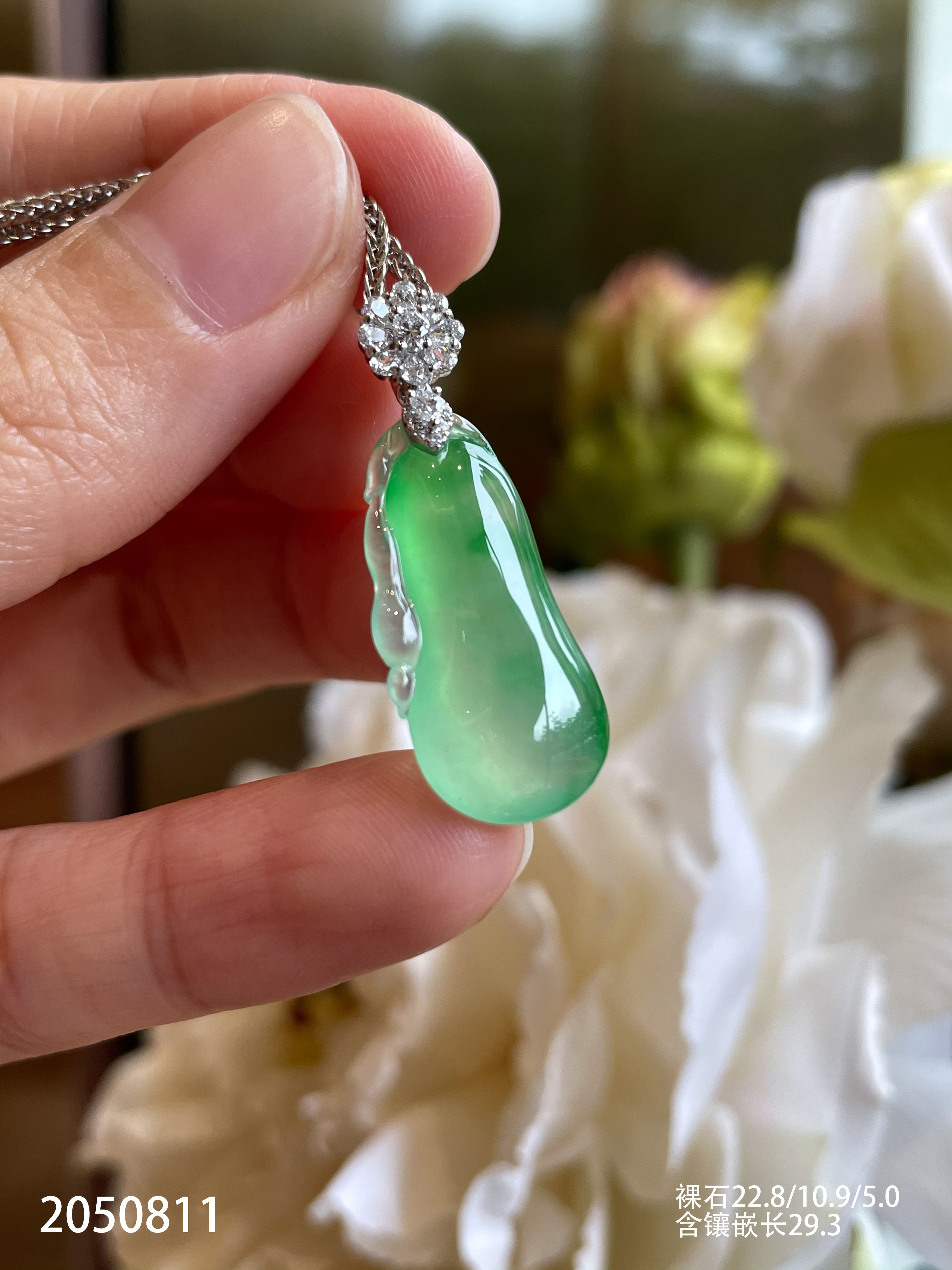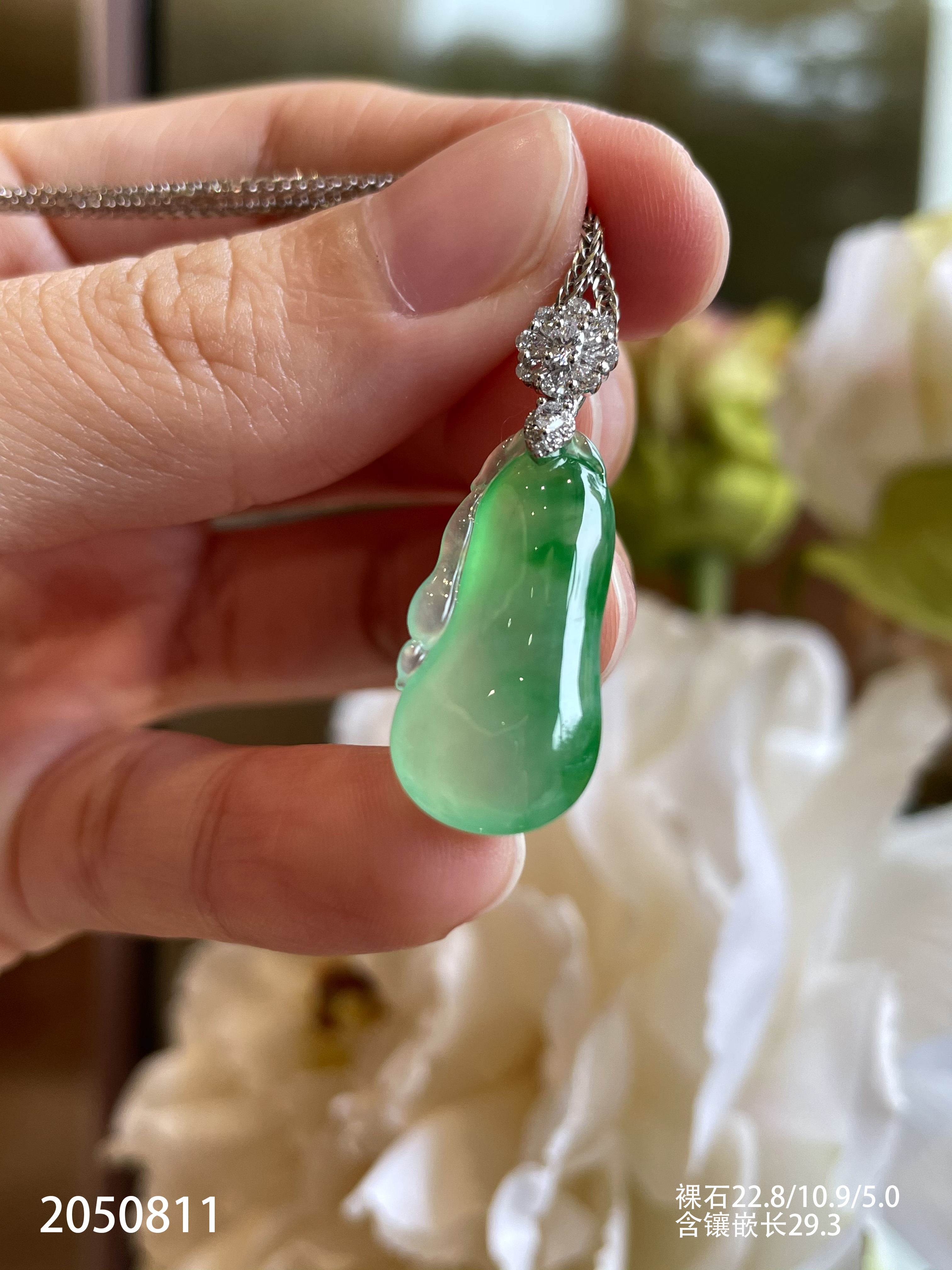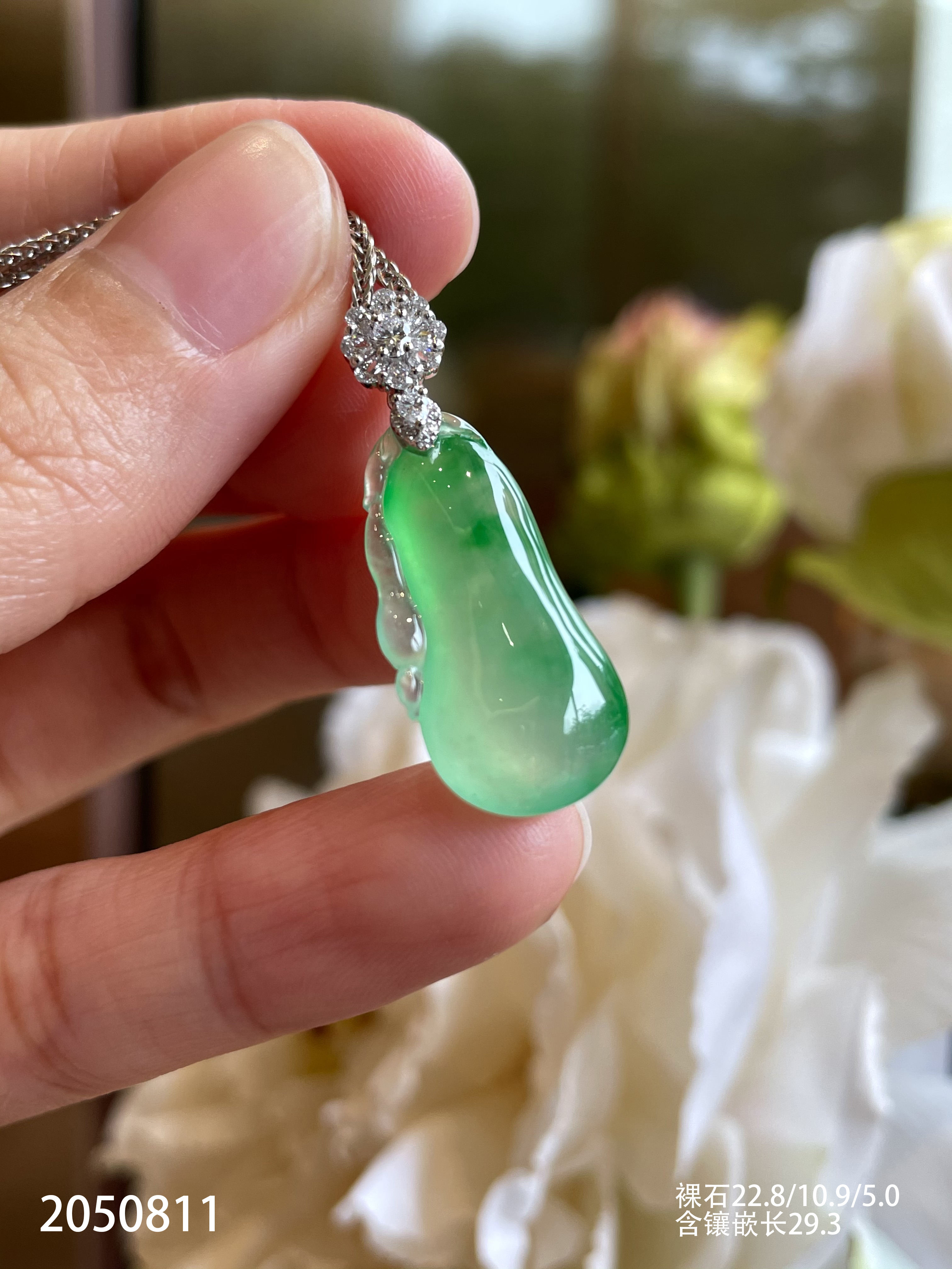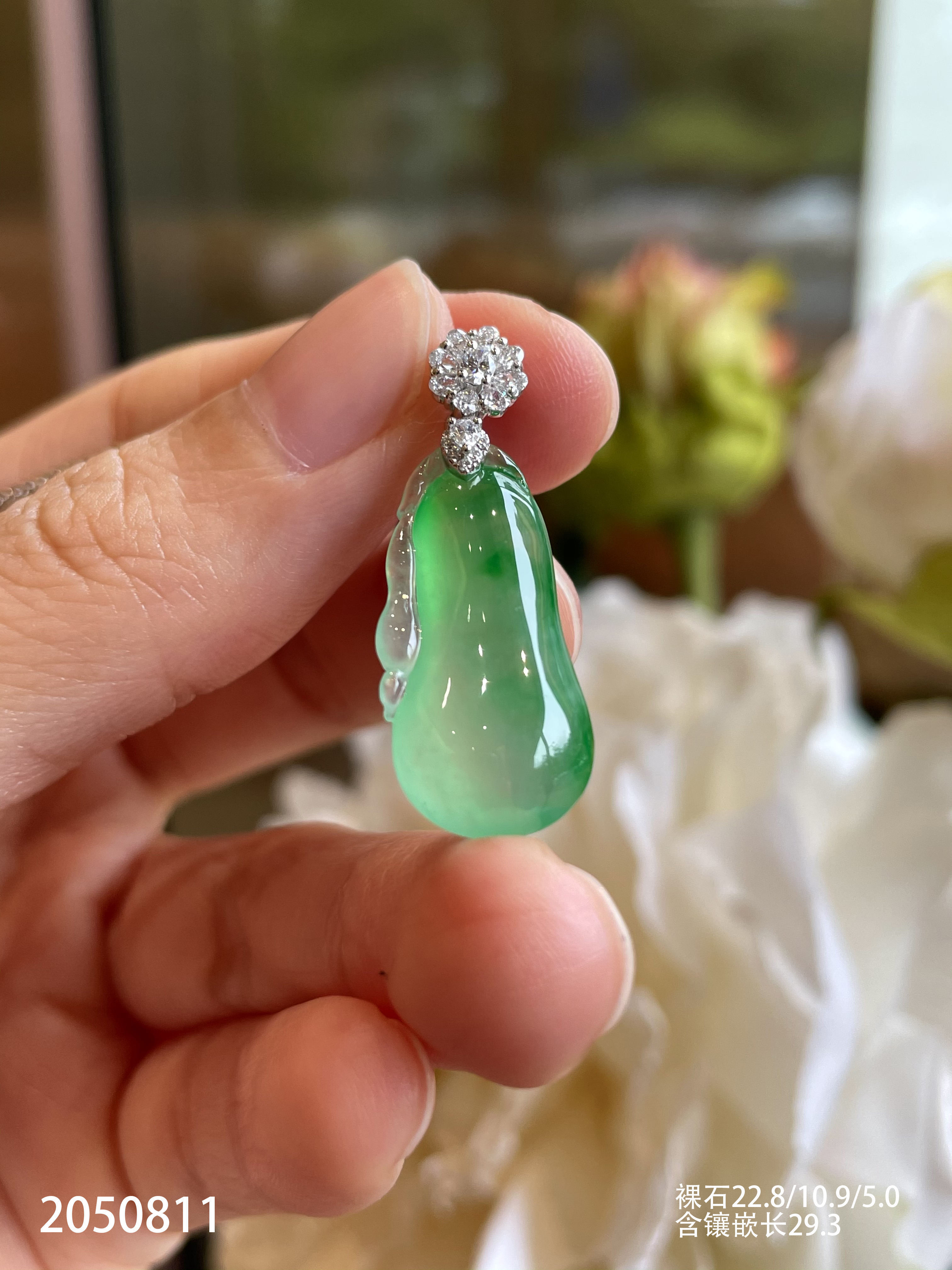 2050811,高冰飘翠福瓜吊坠。具体价格微信咨询