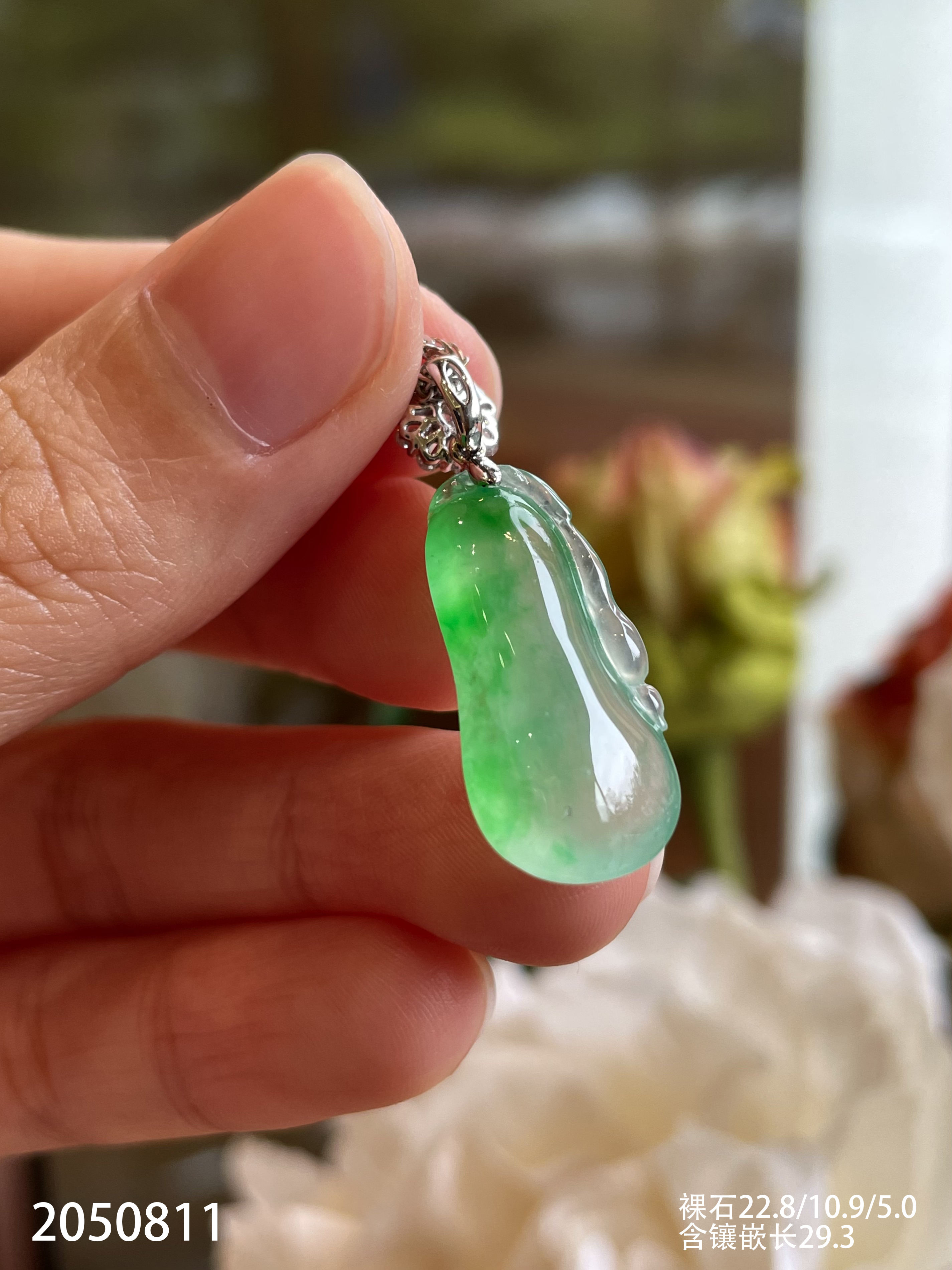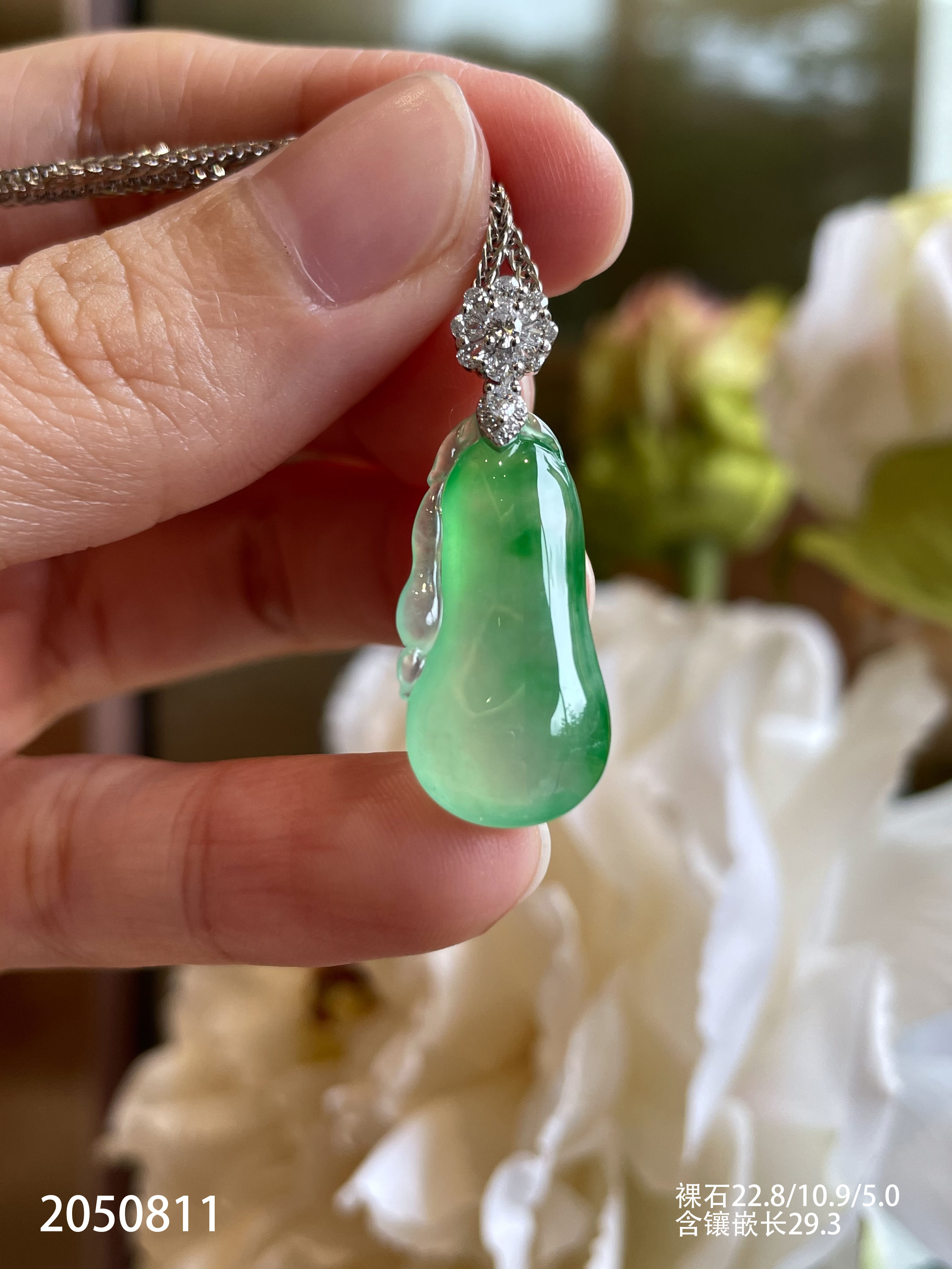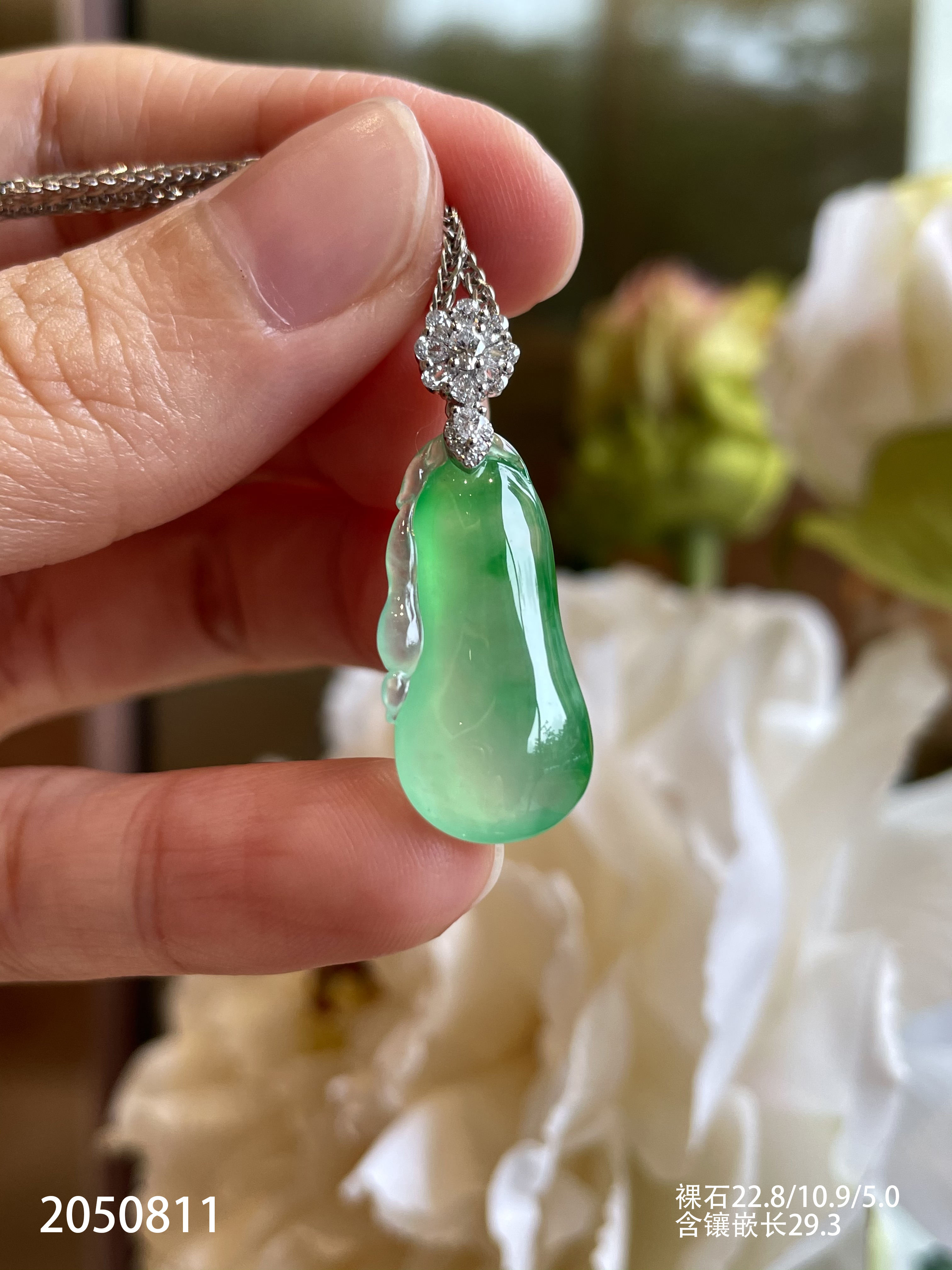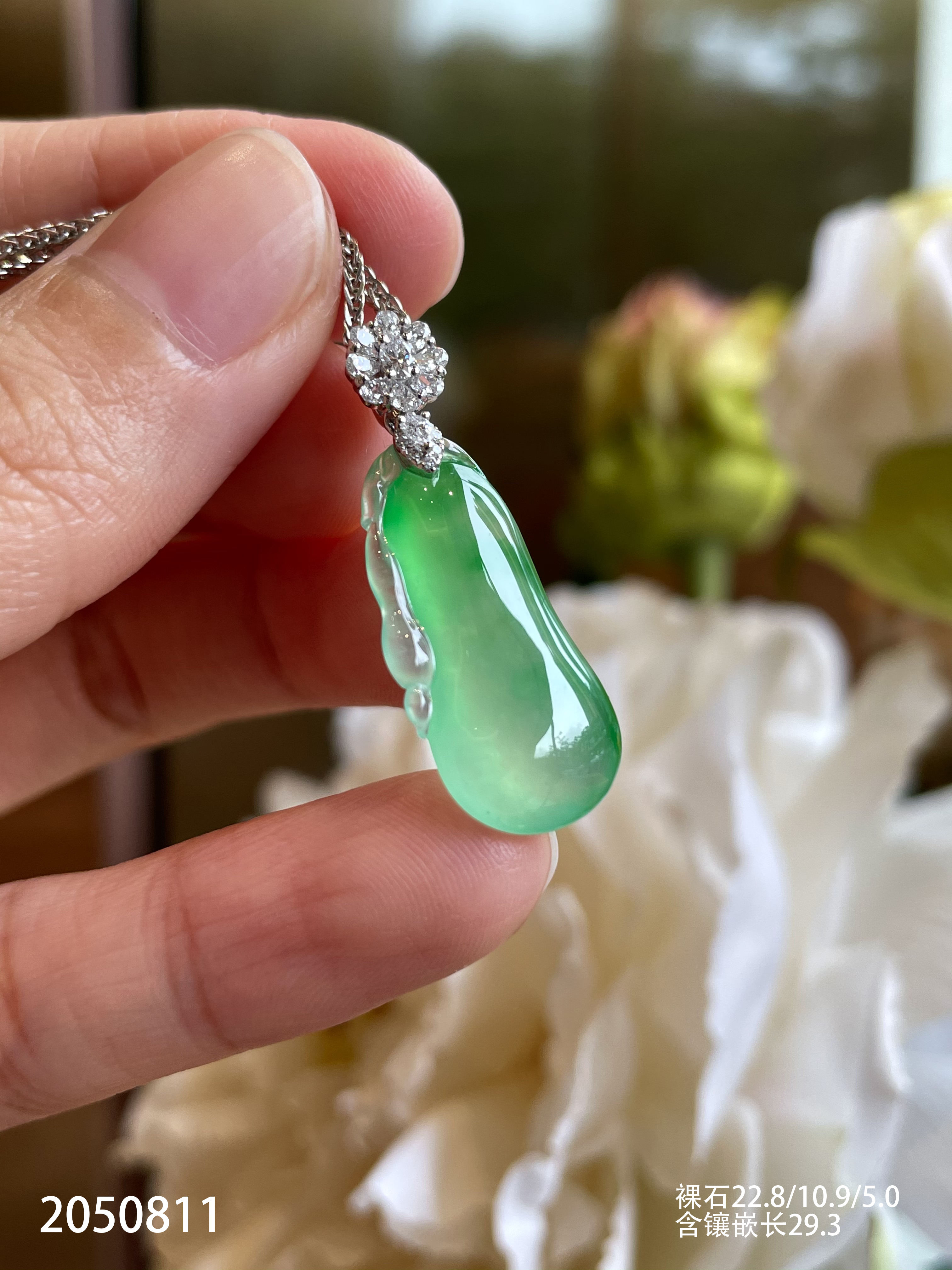 2050811,高冰飘翠福瓜吊坠。具体价格微信咨询