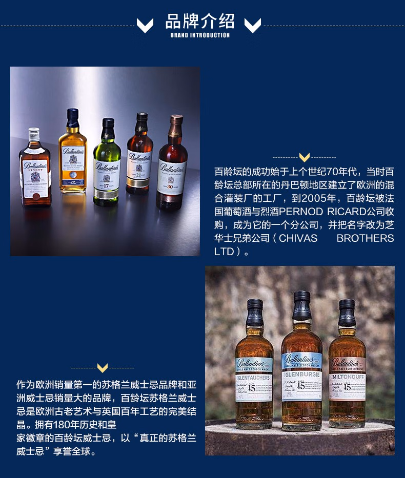 百龄坛 15年陈酿格伦伯吉系列 苏格兰单一麦芽威士忌700ml*1瓶
