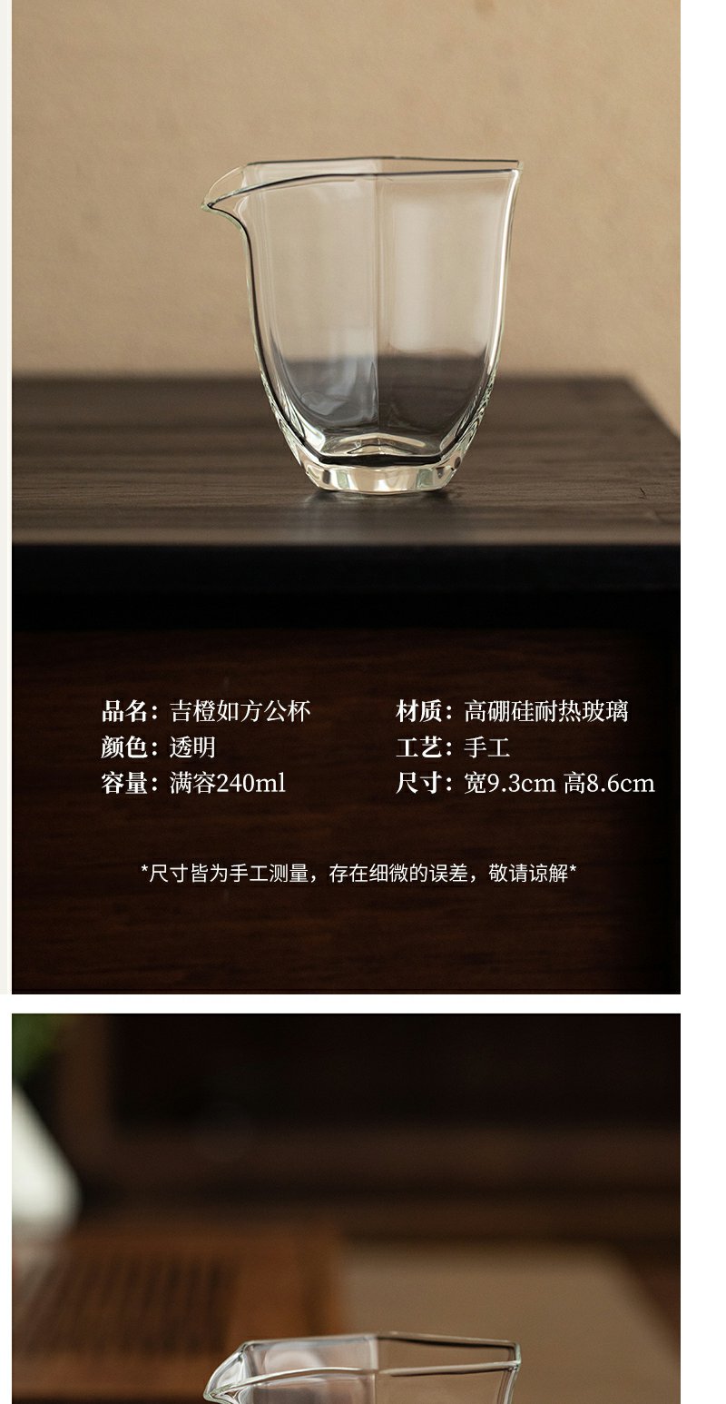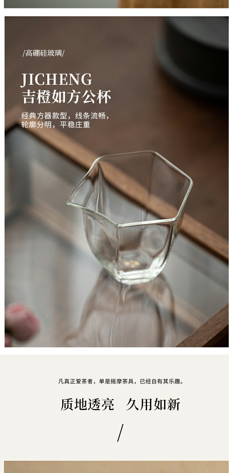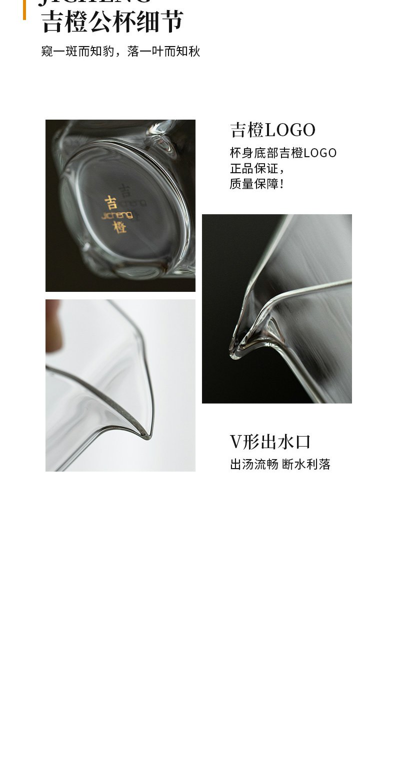 吉橙中式无把手玻璃公道杯高硼硅家用功夫茶品茗杯加厚耐高温茶具