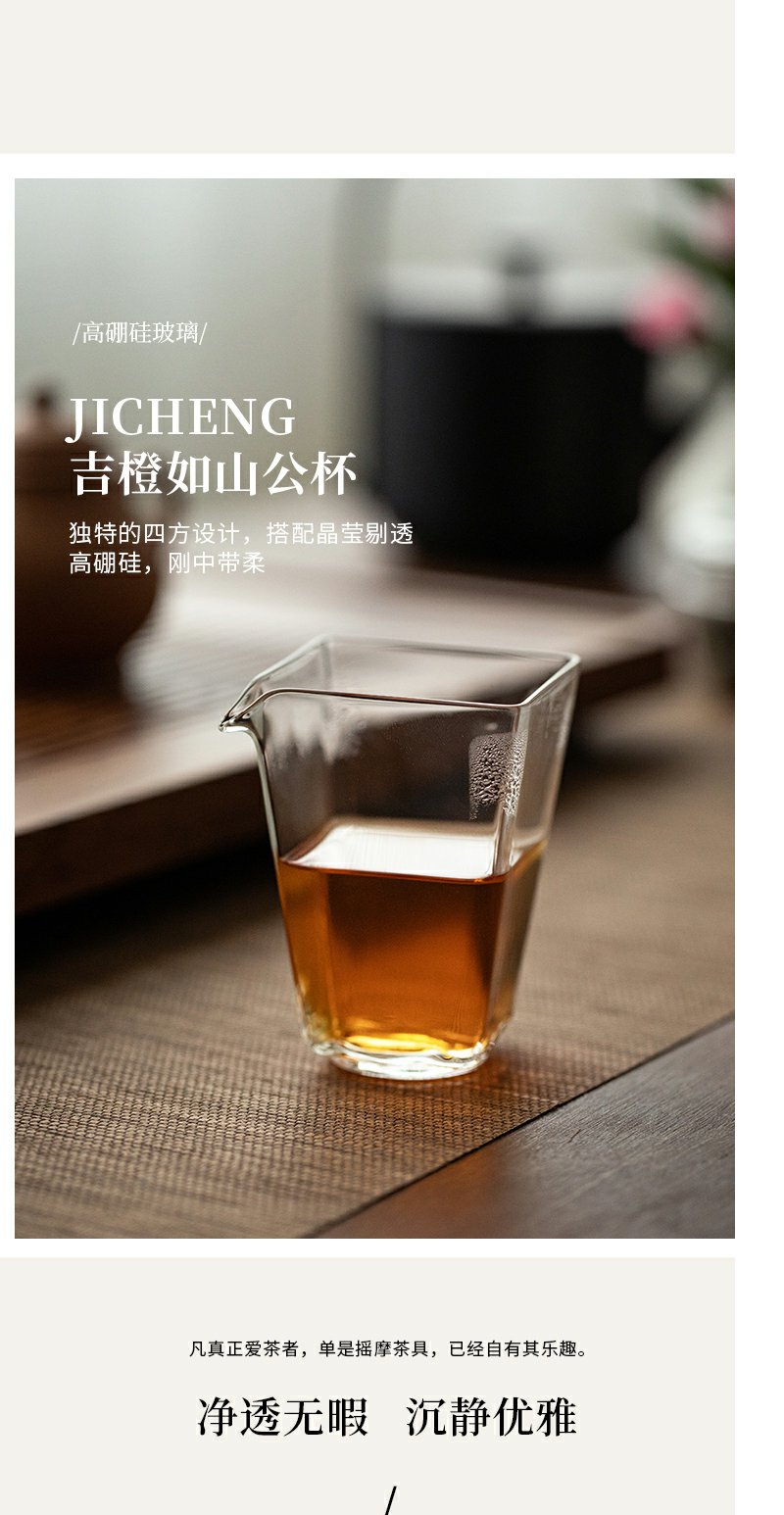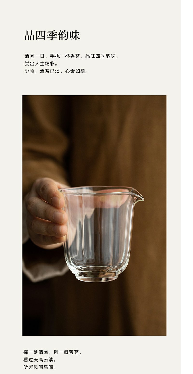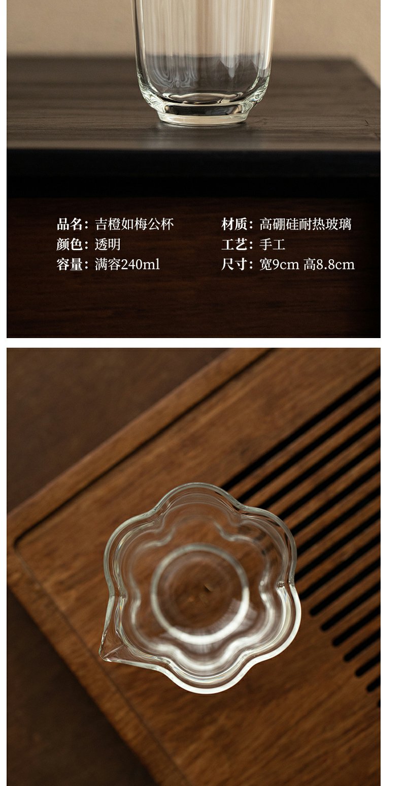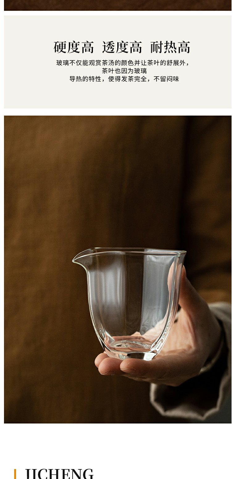吉橙中式无把手玻璃公道杯高硼硅家用功夫茶品茗杯加厚耐高温茶具