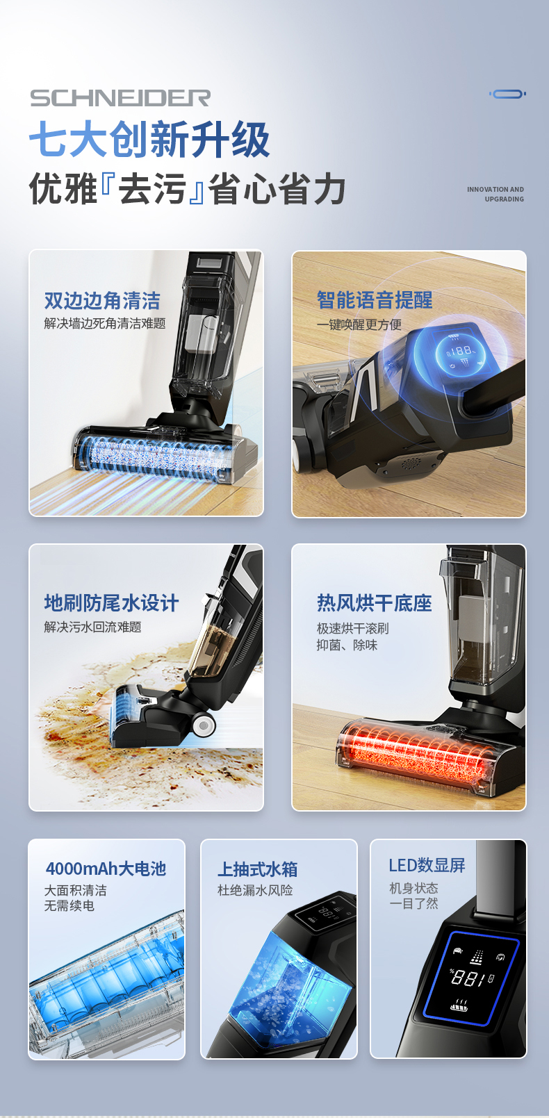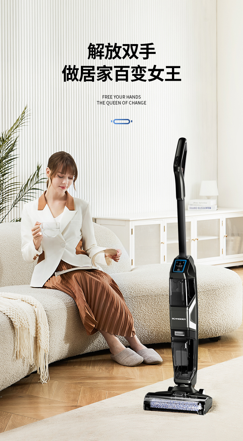 施耐德SCHNEIDER手持无线洗地机家用智能2.0吸拖洗一体自动烘干清洁吸尘器手持无线洗地机