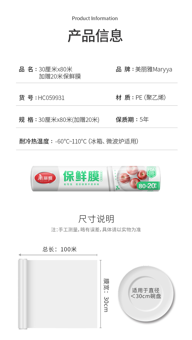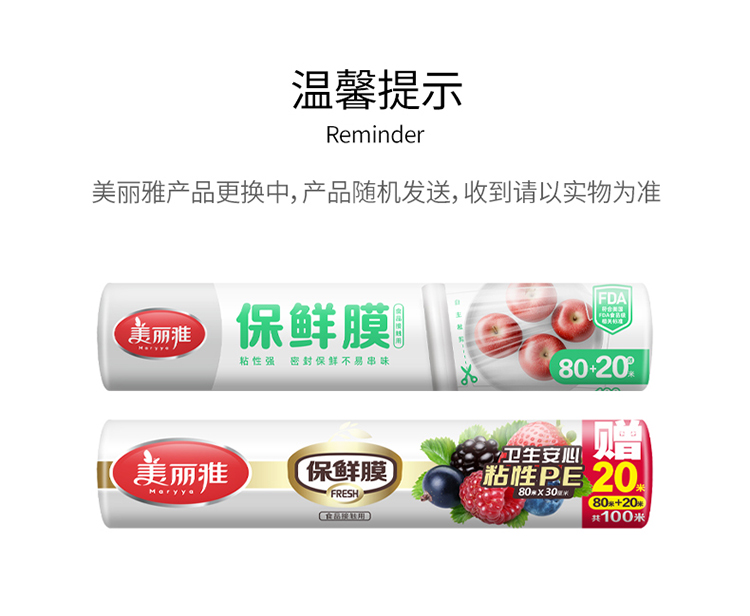 【批发】美丽雅PE保鲜膜 30cm*80M赠20米 1卷