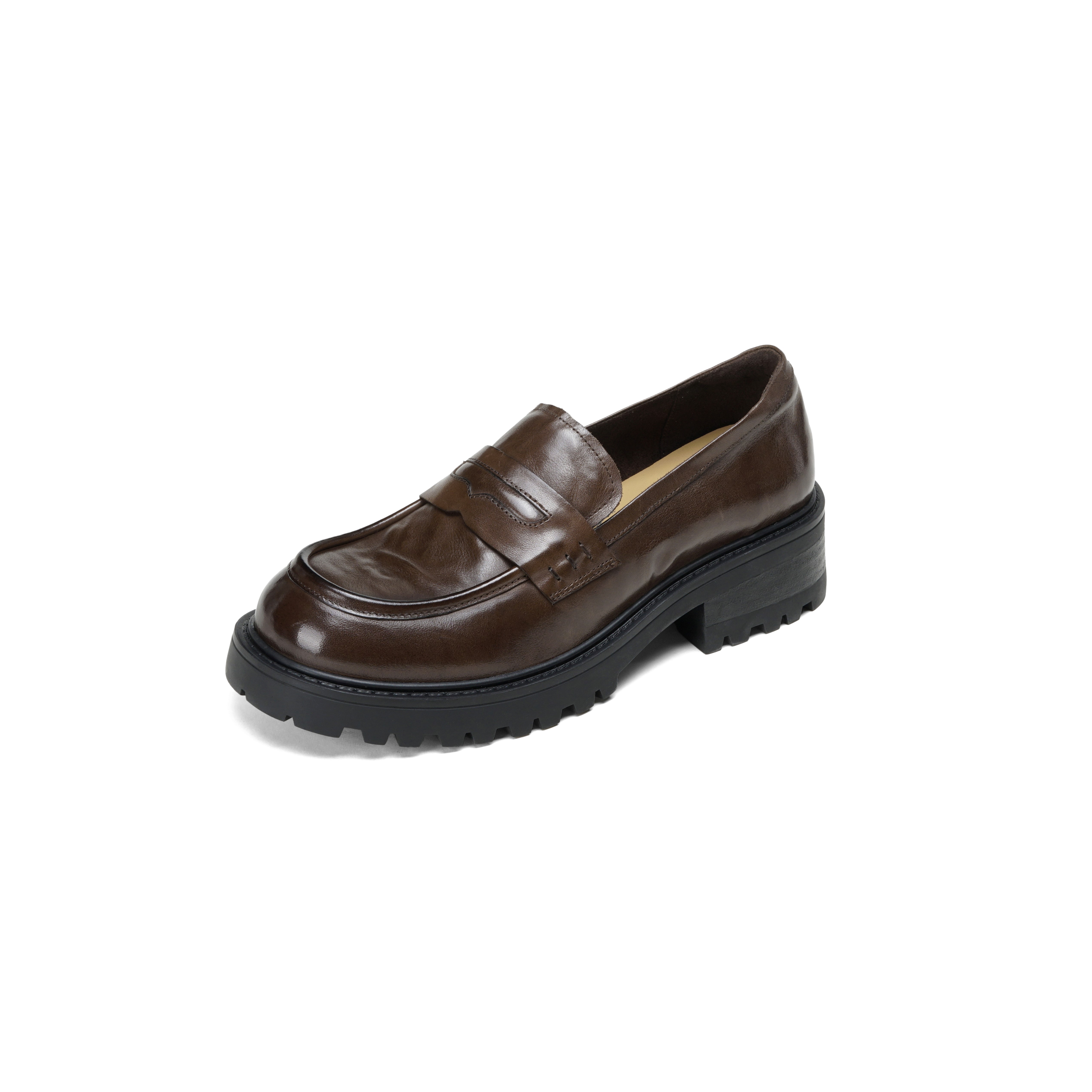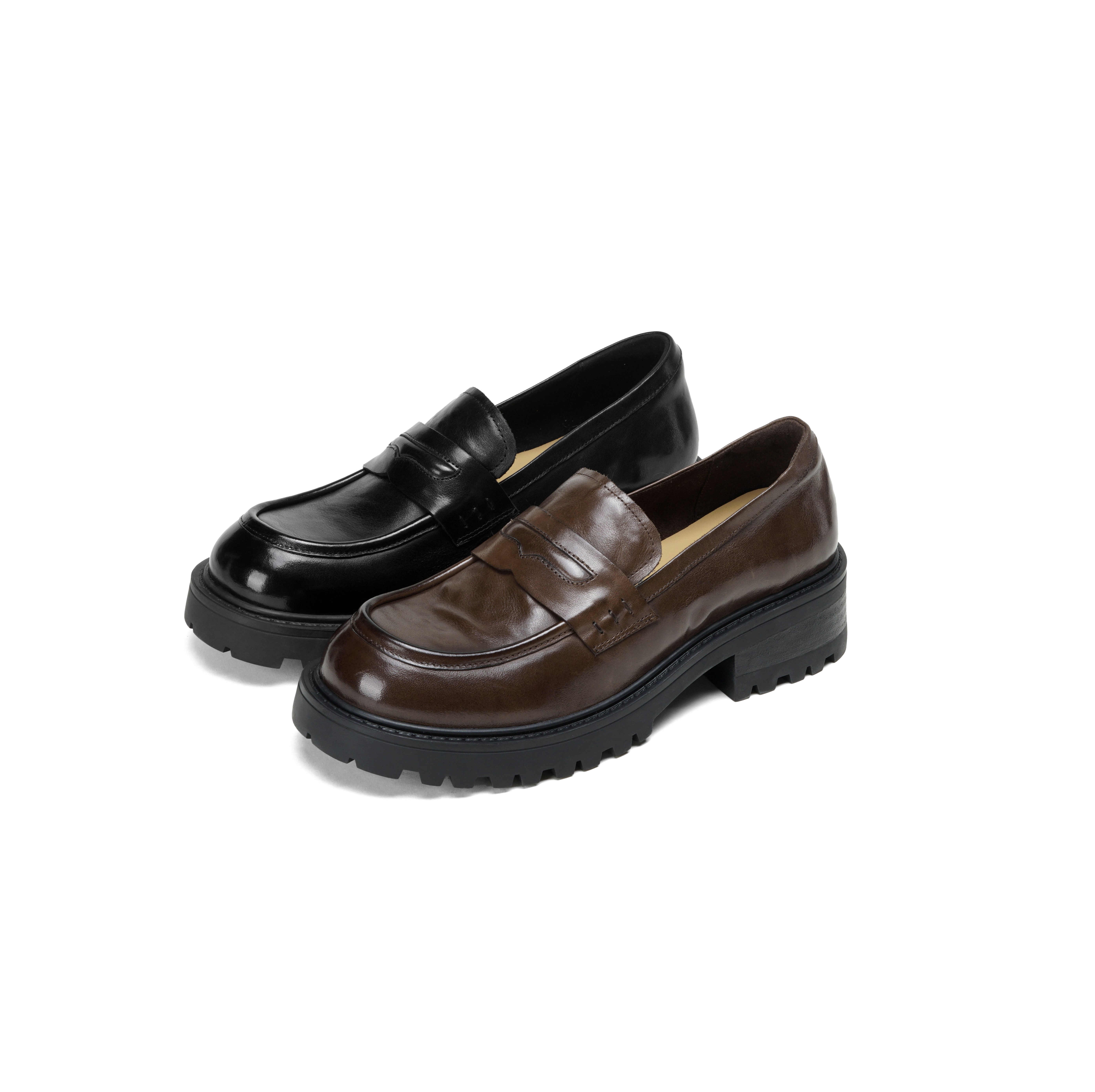 西村名物2025年秋季新款厚底中跟原皮舒适乐福鞋深口单鞋X25CM30461
