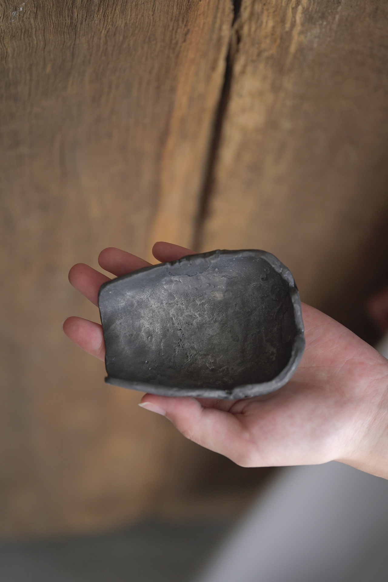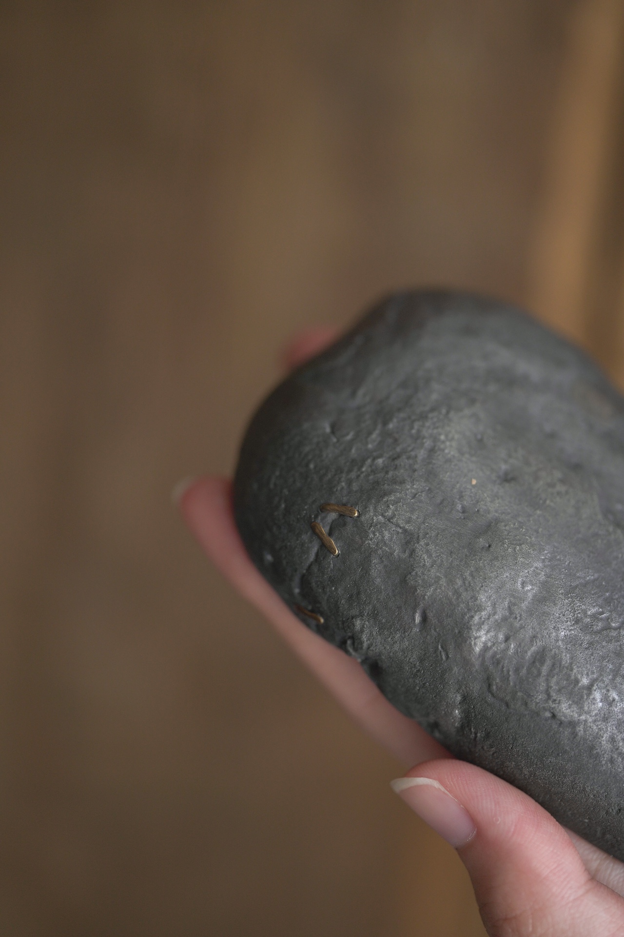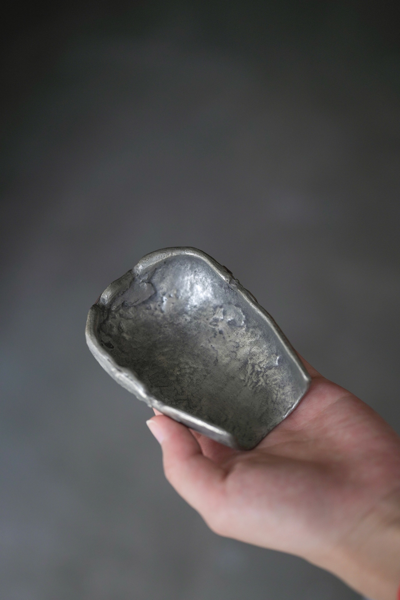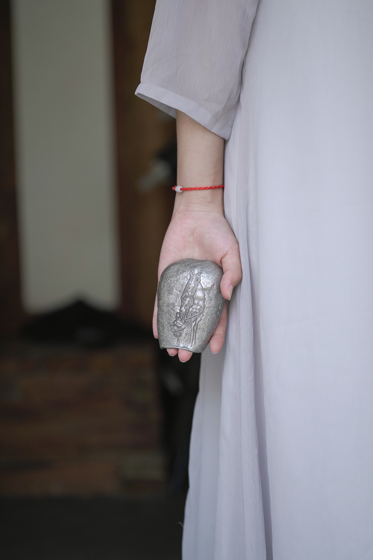乾茂號造|“灵鹿衔芝”石纹锔钉锡茶则 纯锡茶则茶道配件