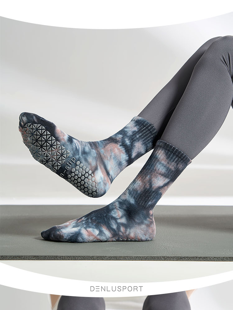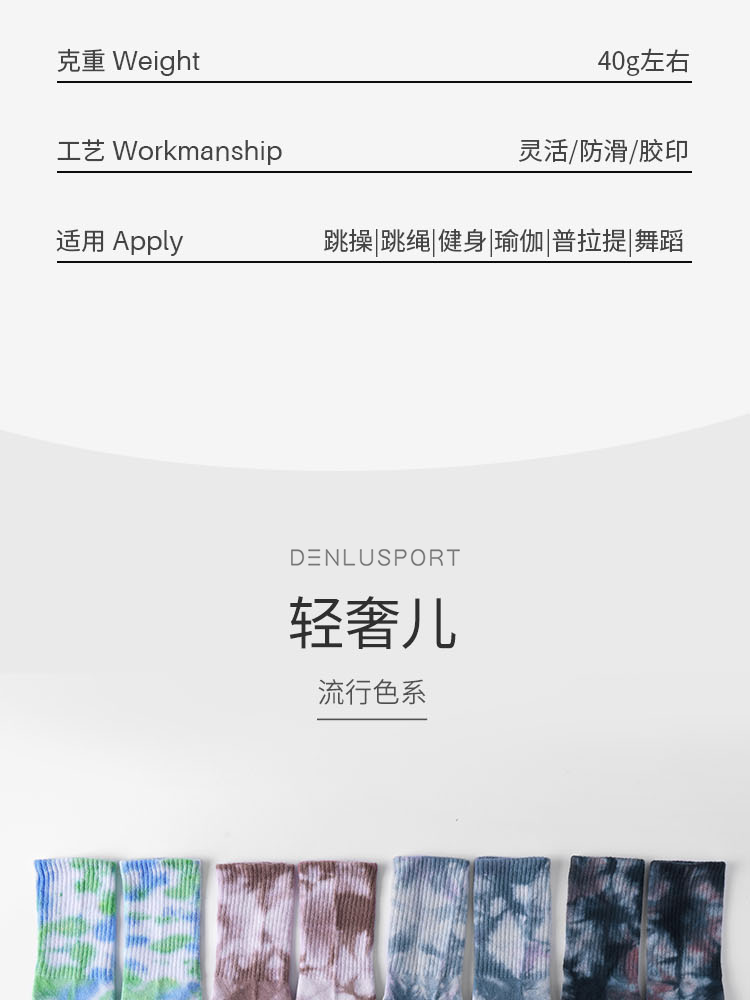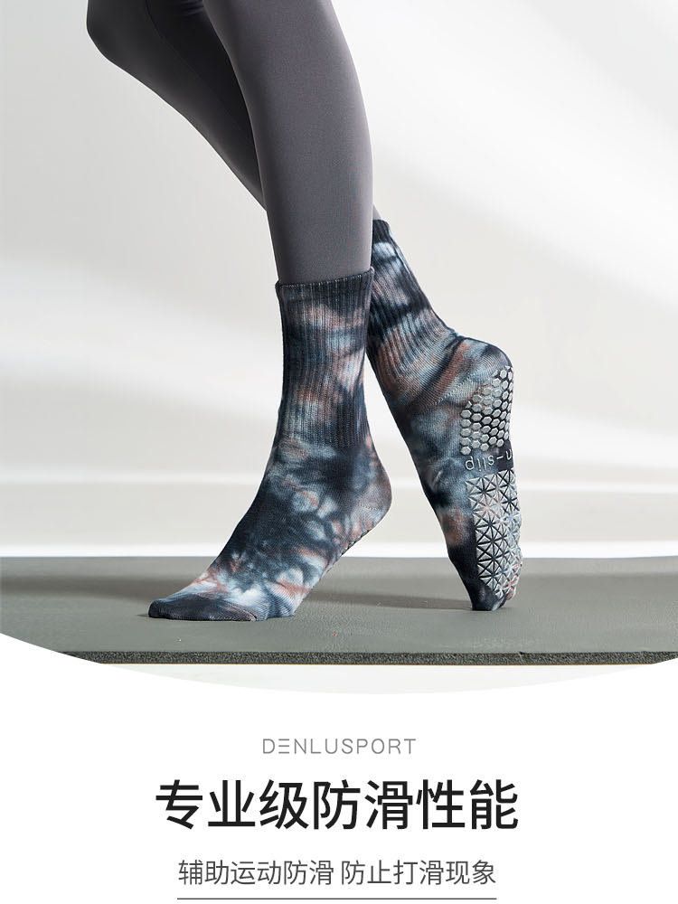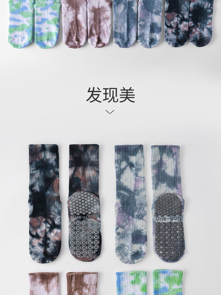 普拉提新款防滑瑜伽中筒袜 扎染时尚运动袜