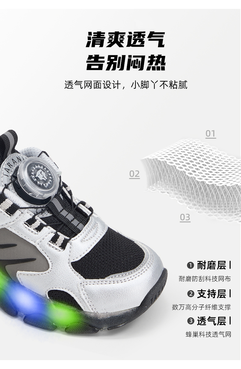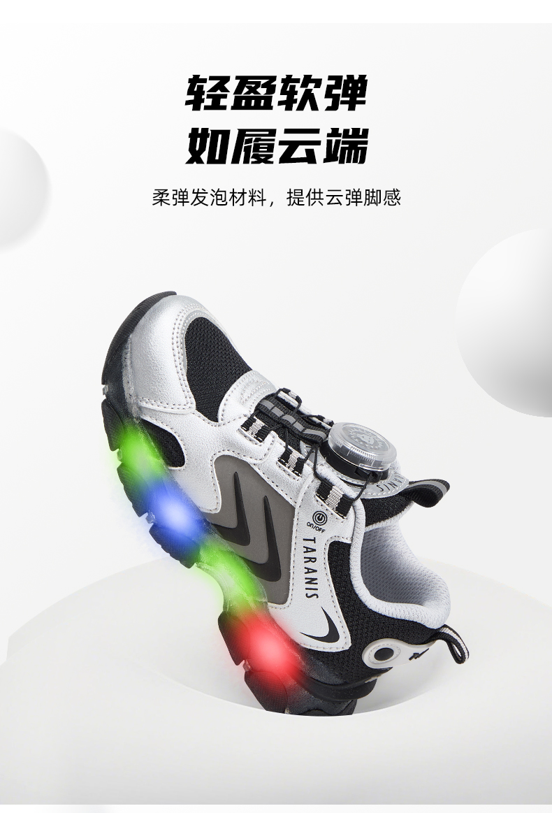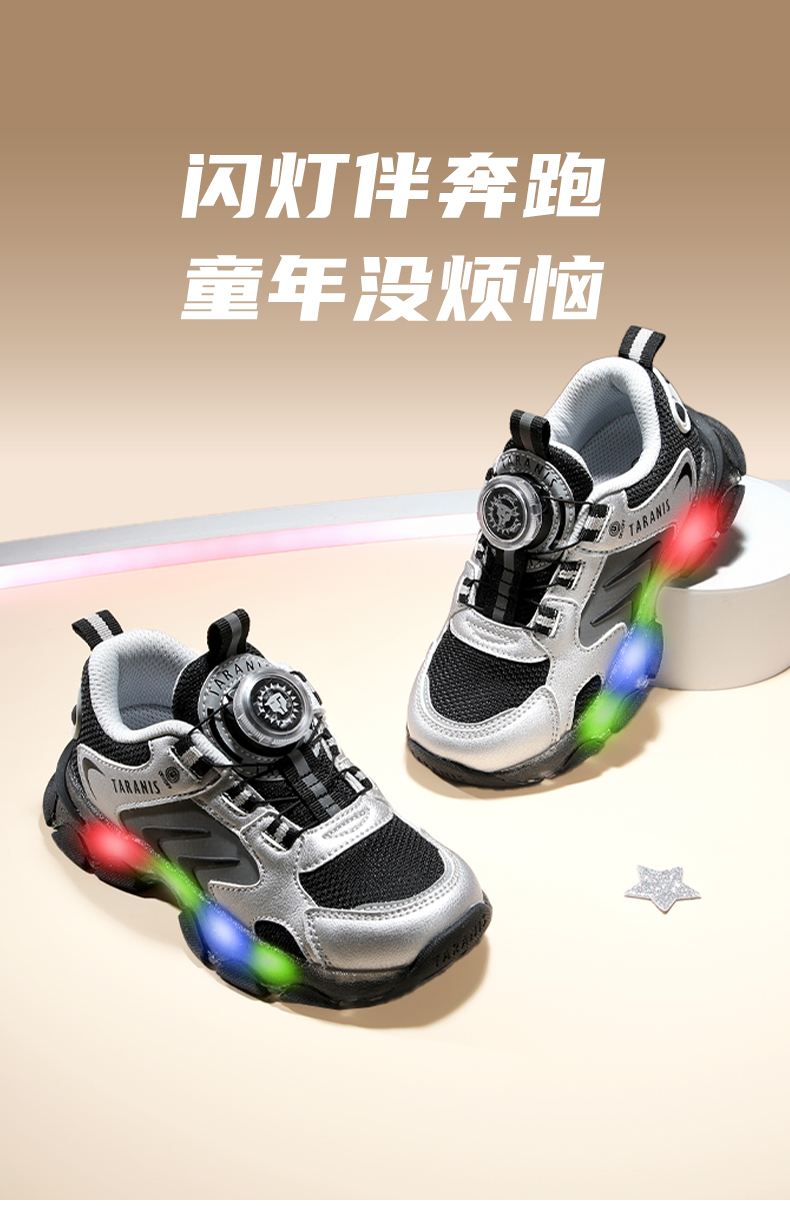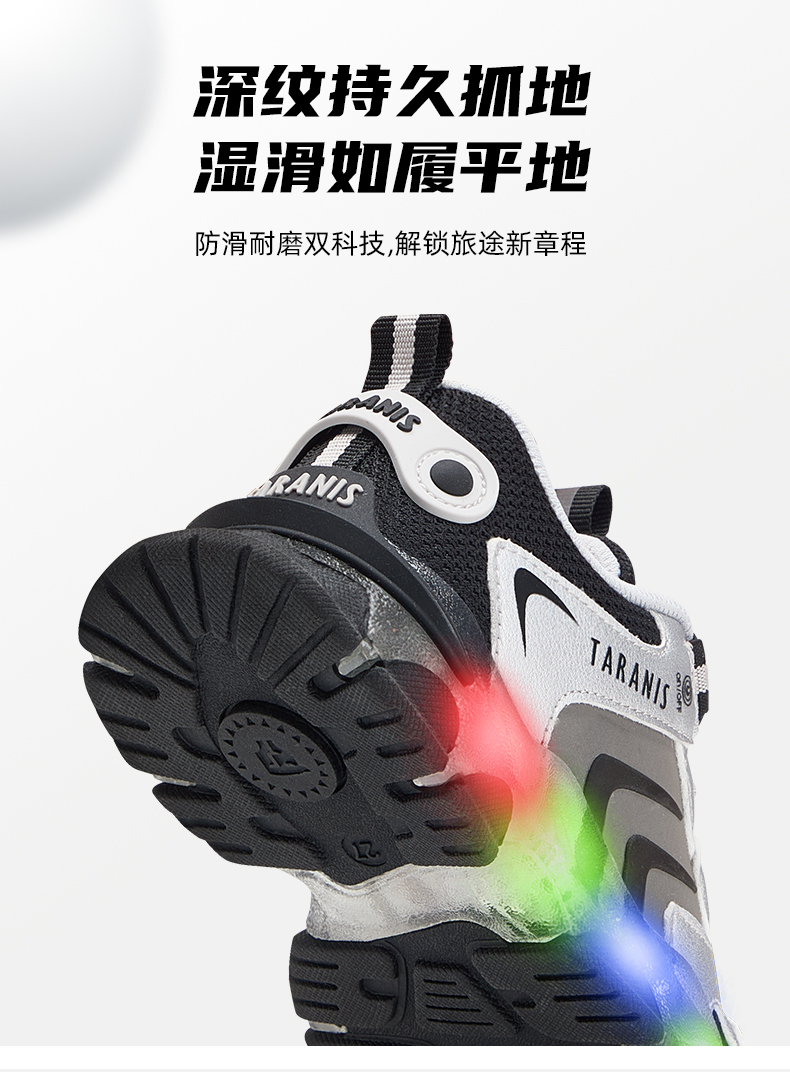泰兰尼斯儿童闪灯鞋秋季男童运动鞋舒适透气跑步鞋闪灯鞋儿童鞋子 T01X5C7987