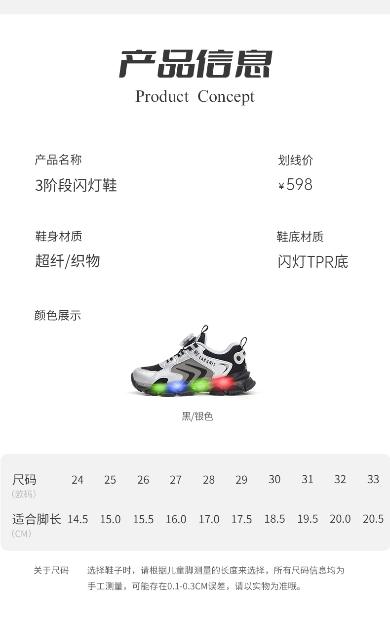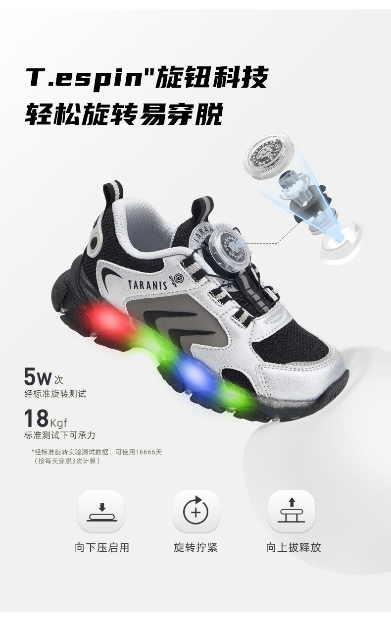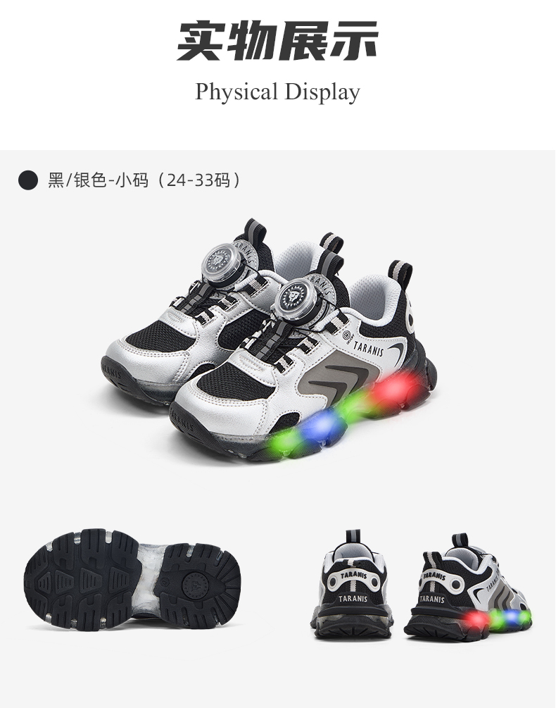 泰兰尼斯儿童闪灯鞋秋季男童运动鞋舒适透气跑步鞋闪灯鞋儿童鞋子 T01X5C7987