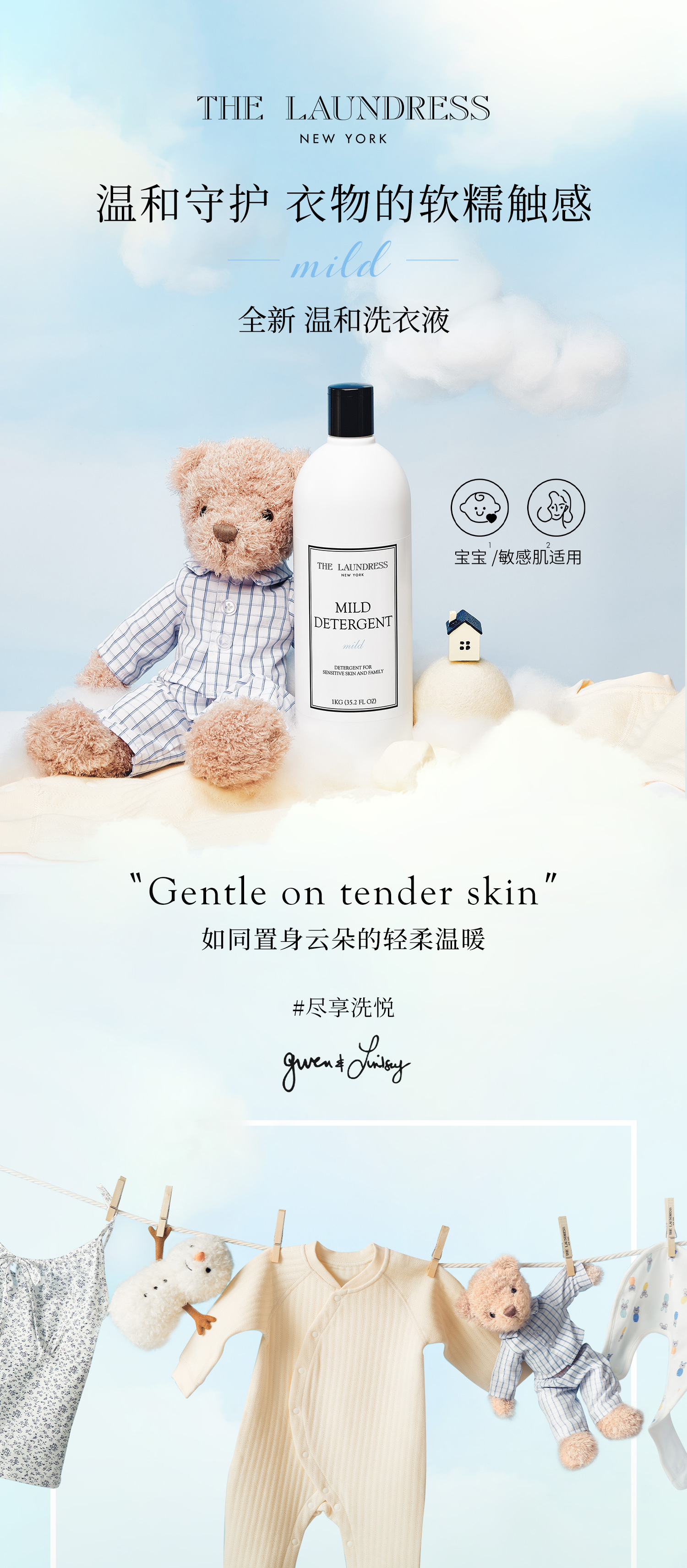 敏肌放心囤 | The Laundress 温和洗衣液 1kg (婴儿) 儿童宝宝温和洗涤清洁液手洗机洗敏感肌可用