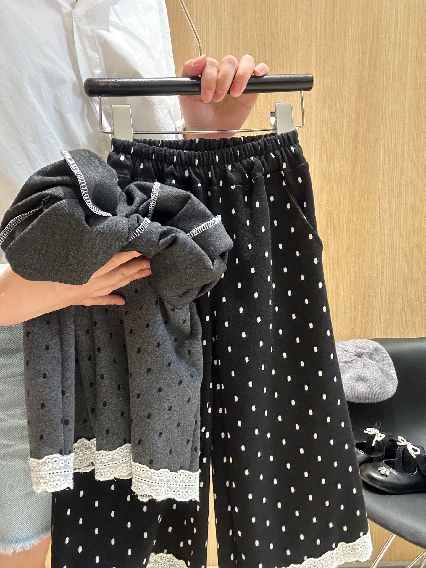 【秒杀】【女童韩系复古蕾丝拼接阔腿裤】巴比童装女孩子中小童新款洋气裤子