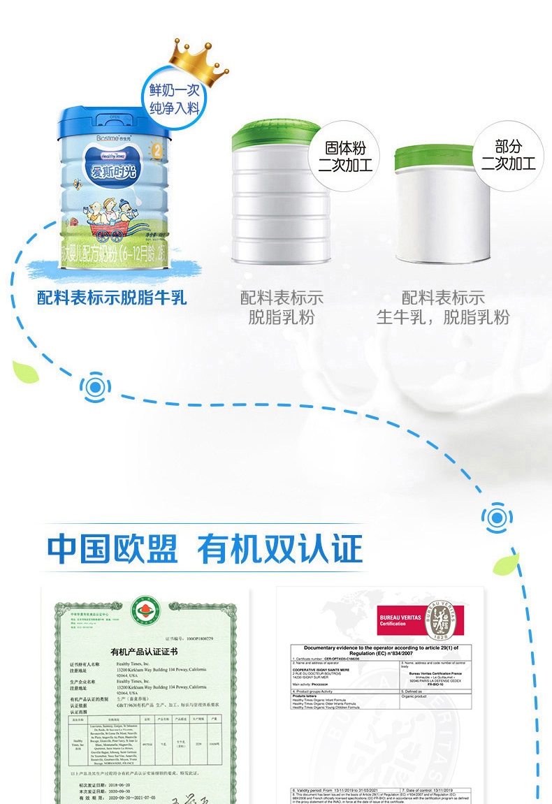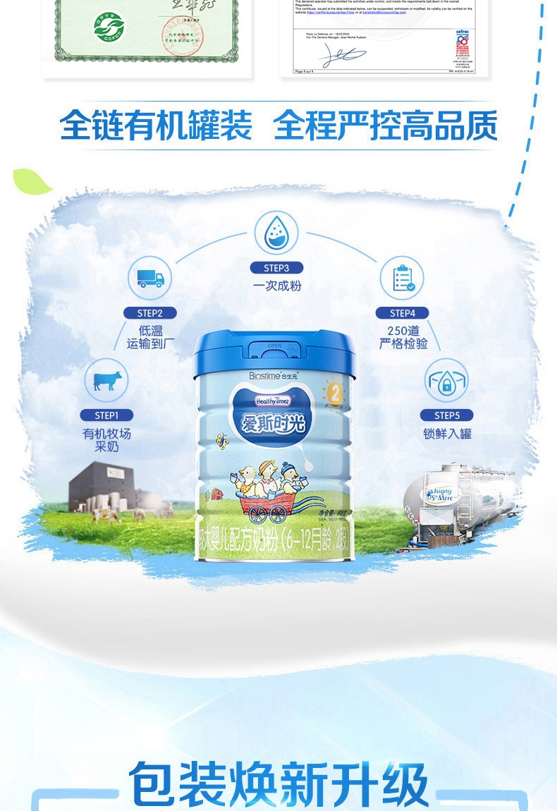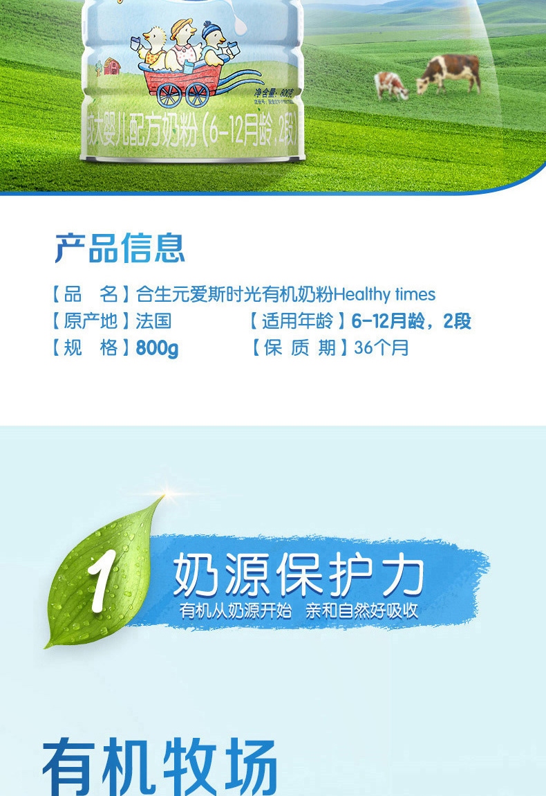 合生元爱斯时光有奶粉2段800g 三年净化有牧场奶源