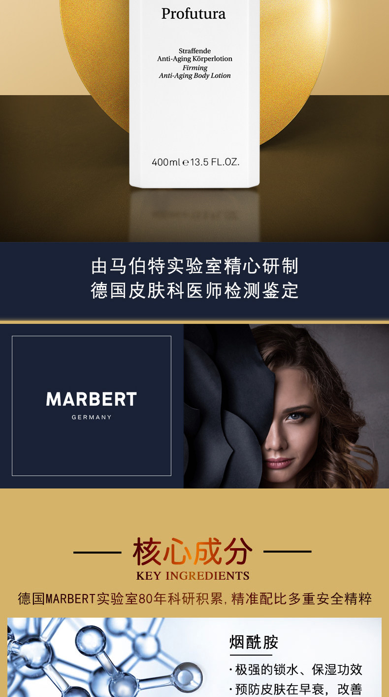 德国marbert防皱紧致身体乳400ml 咖啡因淡化细纹全身保湿滋润紧致