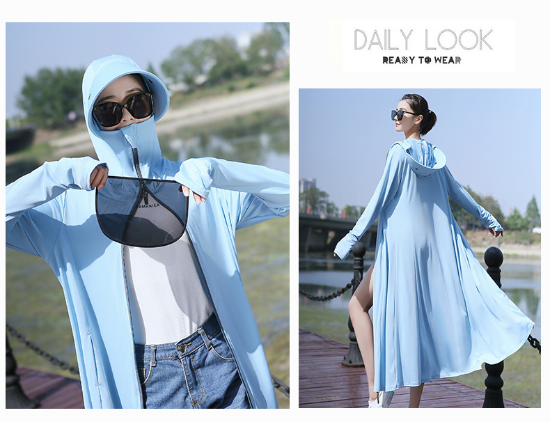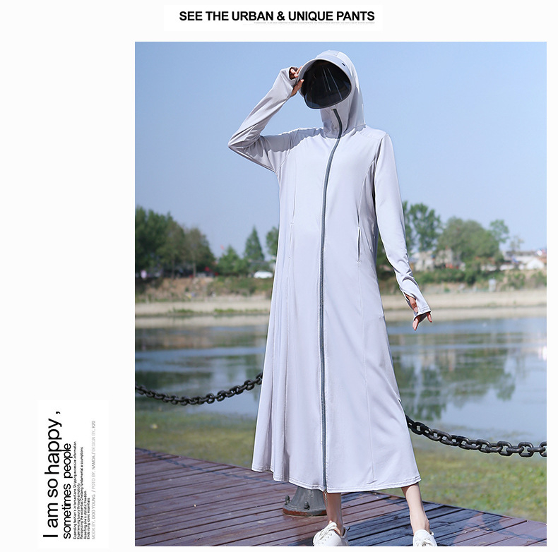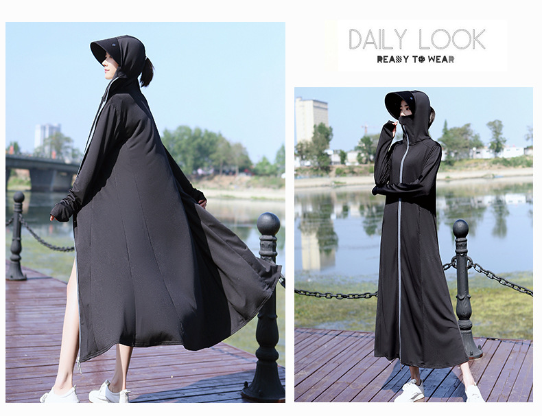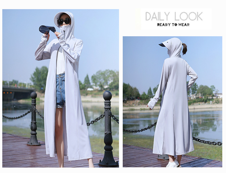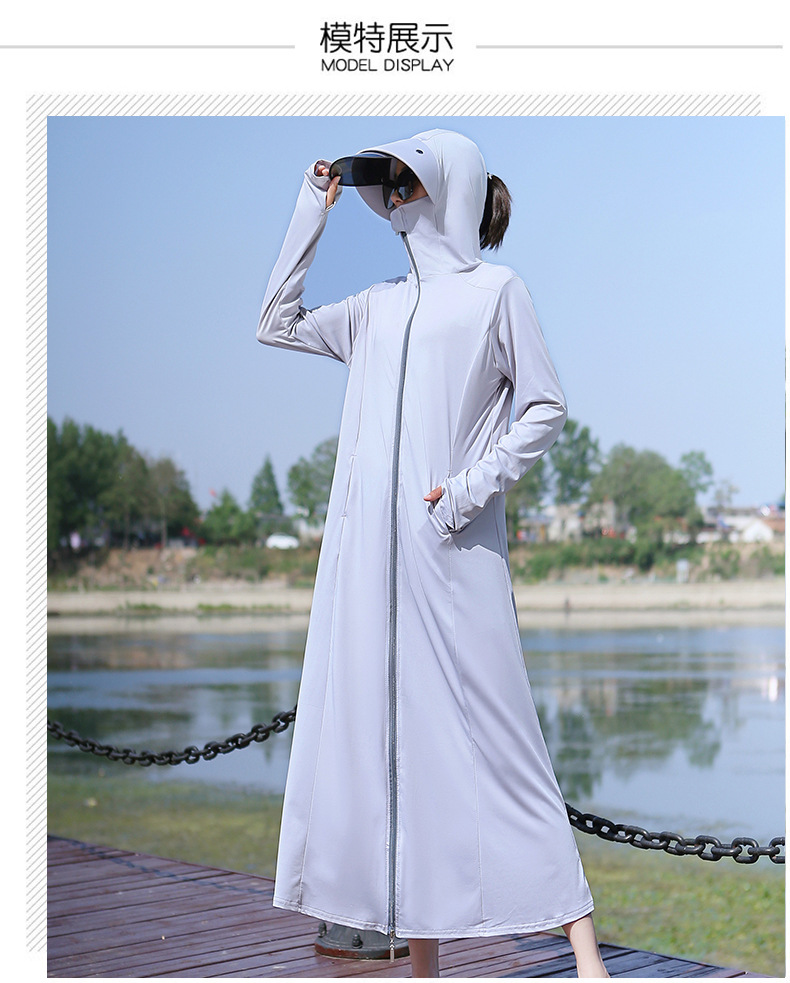 户外全身,冰丝透气长款薄款宽松长袖外套遮阳防晒服