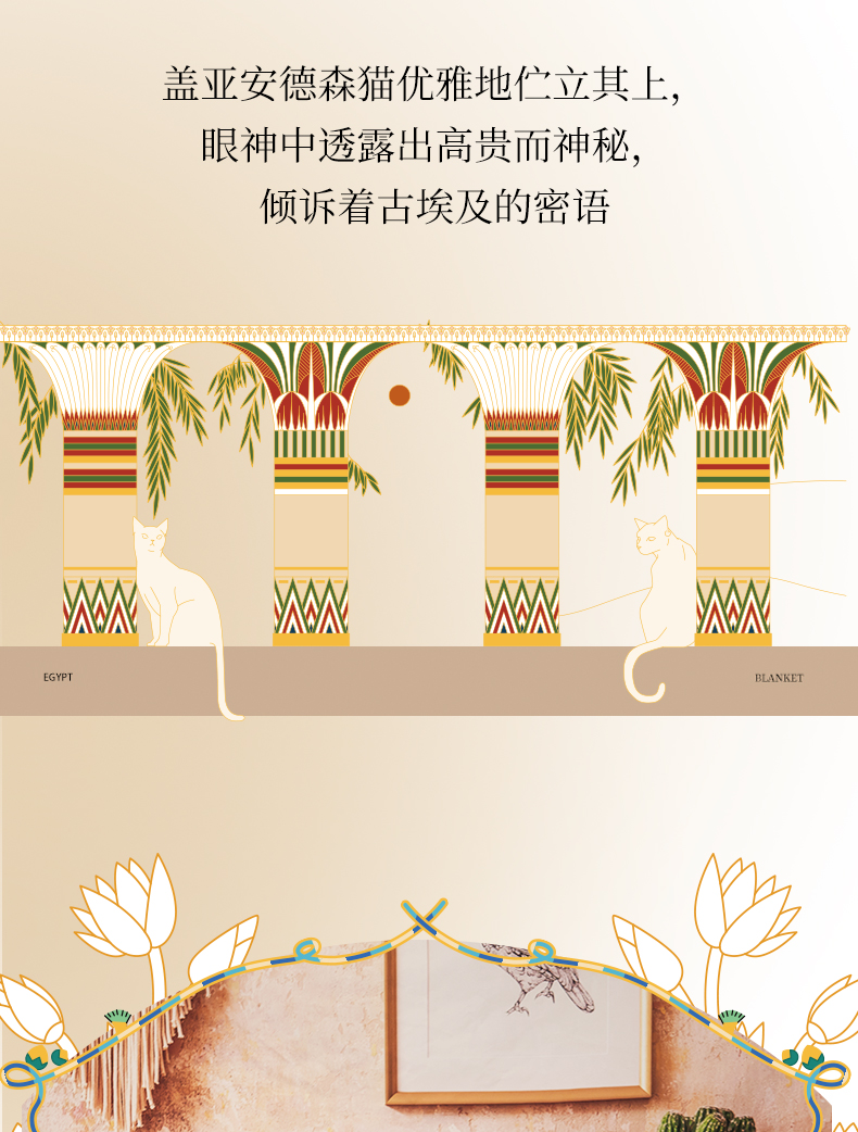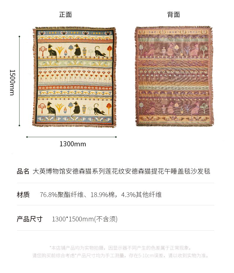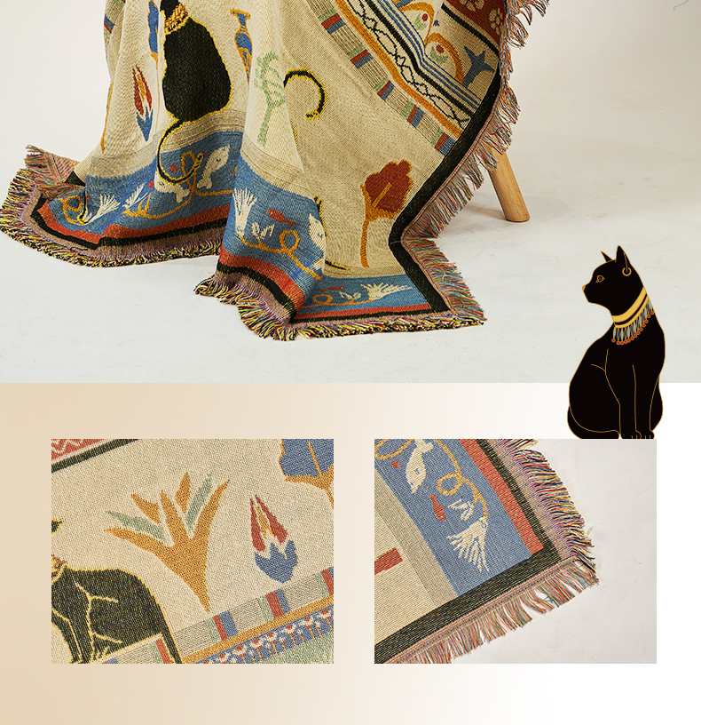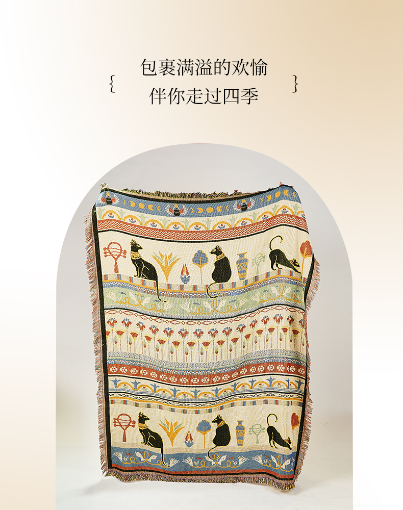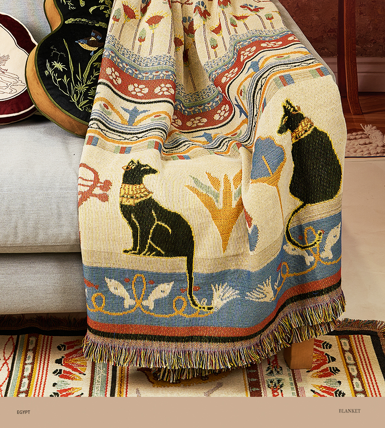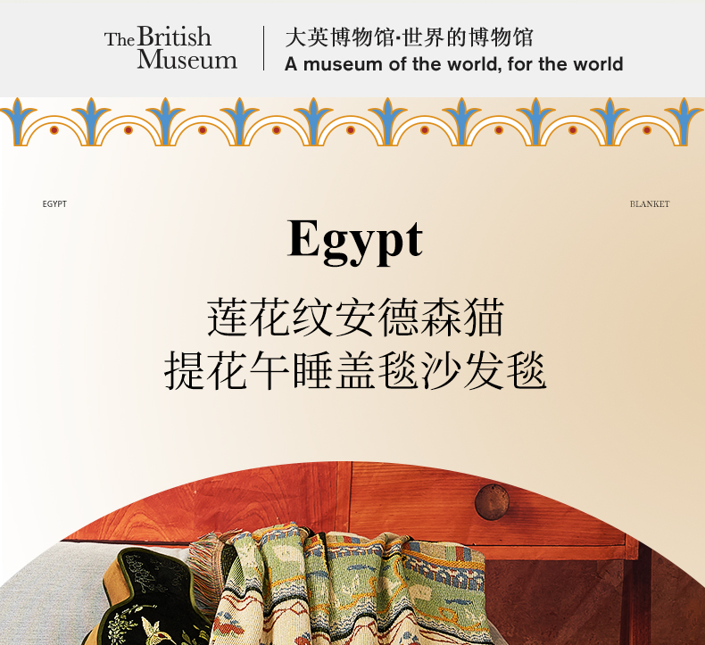 大英博物馆 盖亚·安德森猫系列 莲花纹安德森猫提花午睡盖毯沙发毯