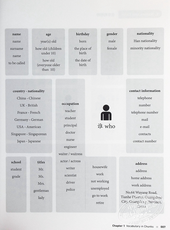 Chapter 1 Vocabulary in Chunks 词语归类复习 » User Guide 1.1 Who 谁 ● 004 Family Members and Relationships / All about Me / Names and Titles /