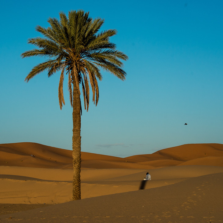 早上进入撒哈拉沙漠拍摄日出,沙漠骆驼等,之后返回酒店早餐,之后前往沙漠小镇扫街拍摄当地人文,集市,民居等等,午餐之后酒店休息。下午自由活动,大家可以自费租乘骆驼于撒哈拉沙漠漫游,或自费租乘沙漠越野车驰骋沙海。指定时间酒店集合,安排拍摄沙漠日落。