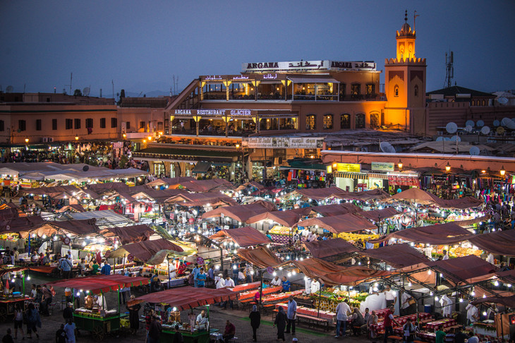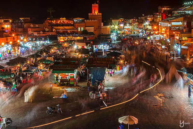 早上拍摄古堡日出,之后前往游览拍摄点【马拉喀什】它是摩洛哥南部明珠,可以拍摄不眠广场,从日出到深夜,你可看到印度的舞蛇人、出售香料茶叶的阿拉伯人、讲故事和算命的摩洛哥老人,各种卖艺的表演,还有数不清的买卖食品、饮料、服饰、地毯、摆设、皮革、手工艺品小摊位,它就像香港的兰桂坊、上海的新天地一样,因为有此广场,马拉喀什有了无穷生命力。
