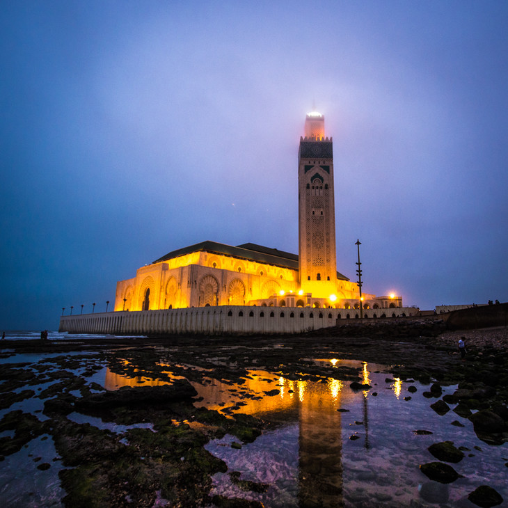 抵达之后安排游览拍摄【卡萨布兰卡清真寺】和哈桑二世清真寺(伊斯兰世界第三大清真寺,建筑面积2公顷,长200米,宽100米,屋顶可启闭,25扇自动门全部由钛合金铸成,可抗海水腐蚀,寺内大理石地面常年供暖,是世界上现代化程度最高的清真寺。温馨提醒:入内拍摄不可携带三角架)【迈阿密海滨大道】迎着海风,瞭望蓝色大西洋,也可拍摄海边灯塔以及海上日落。