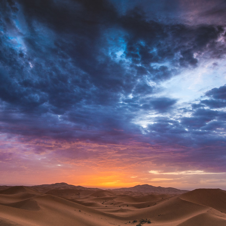 早上出发,当天路程较长,前往撒哈拉沙漠。游览拍摄点【梅祖卡】—撒哈拉之门,这里的沙漠独一无二,以形态各异的沙丘闻名,更因为它会随着自然光线的变化展现出金色、粉色等不同的美丽色泽,成为摩洛哥境内独特的大漠风光,更成为无数人梦中的撒哈拉!穿行撒哈拉,欣赏日落美景的奇妙色彩,这是来到梅祖卡的不二选择。当夜幕降临时,可拍摄一望无际的夜空星斗。