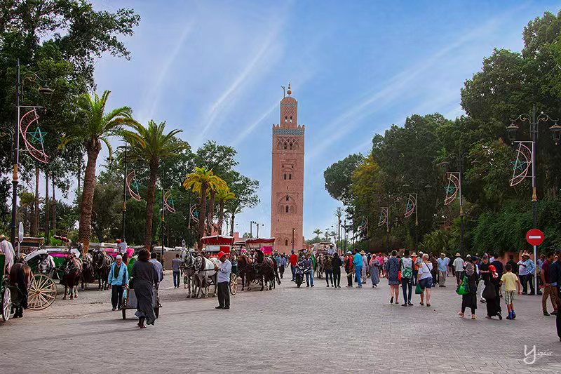 早餐之后出发前往老城扫街拍摄人文风情,之后游览拍摄点【逸夫圣罗兰花园】,绿色的植物与蓝色的房子交相辉映,整个花园内弥漫着清爽的空气,十分宜人,拍摄马拉喀什的老城,老城一侧伫立着库图比亚清真寺,塔高67米,外面装饰得富丽堂皇,塔尖上的圆球据说是纯金的,之后前往索维拉,拍摄大西洋海边小城,古堡,小鱼缸风情,之后入住酒店。