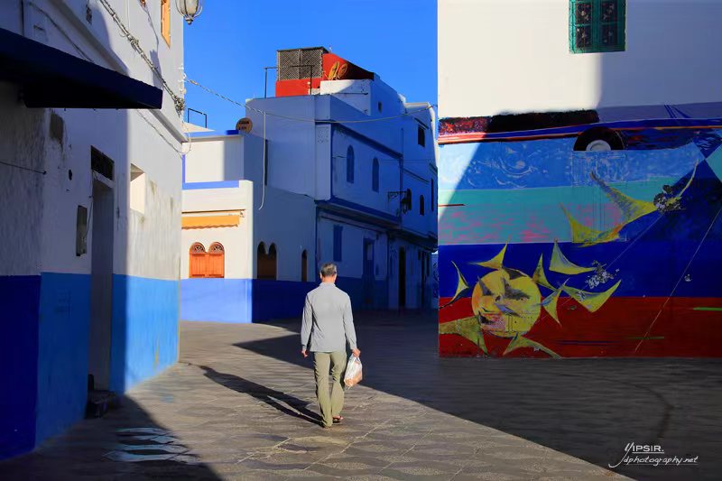 清晨摄影领队带队大家步行前往拍摄哈桑二世清真寺作为背景的海边日出。返回酒店早餐后,驱车游览拍摄点【拉巴特清真寺广场】它是摩洛哥四大皇城之一,精致的建筑让人眼前一亮。抵达【乌达亚堡】拍摄,在这里的一瞬间,你会误以为自己穿越到了一个爱琴海边上的小渔村,蓝白相间的街道和民房,气息是如此的清新,期间点缀的各式古老的小门充满情趣。下午抵达【艺术小镇-艾西拉拍摄】,这里游客较少没有中国团队入住,适合拍摄,大家尽情游览拍摄小镇风情直到日落时分。