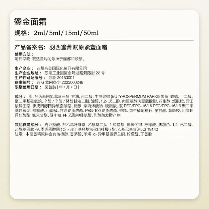 羽西鎏金面霜 21%玻色因溶液kan皱补水修复滋润促生胶原
