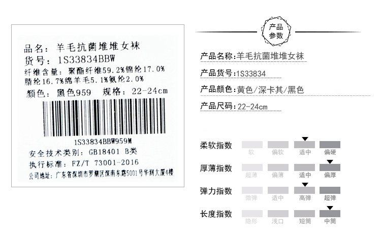 羊毛抗菌堆堆袜秋冬小腿袜保暖防滑高弹33834