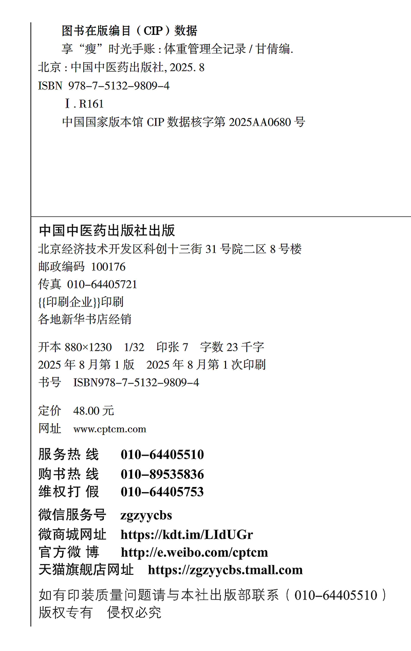 享“瘦”时光手账 体重管理全记录 甘倩 主编 探索期解锁身体密码 深耕期沉淀健康厚度 收获期习惯破茧成蝶 中国中医药出版社