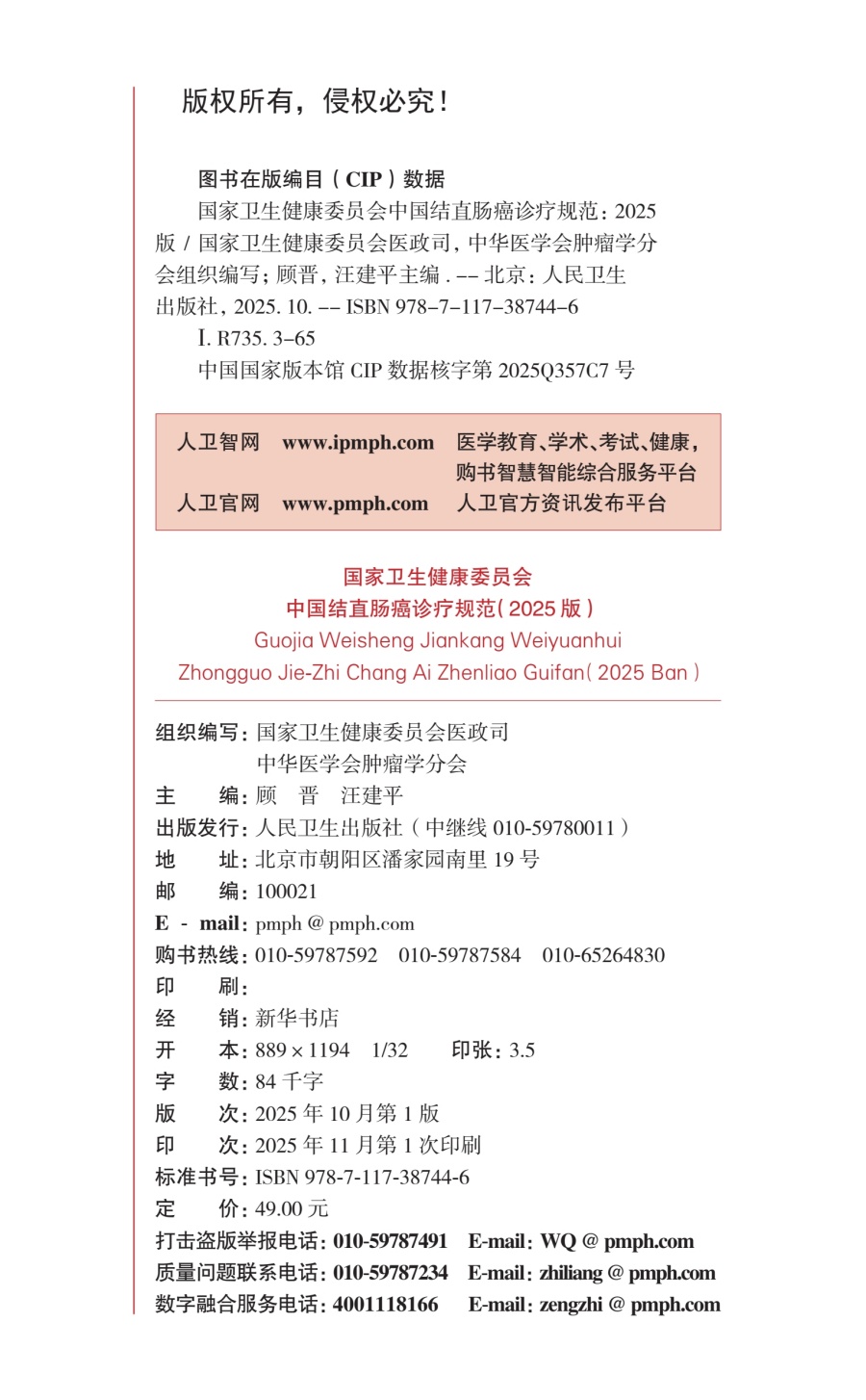 书名:国家卫生健康委员会中国结直肠癌诊疗规范(2025版)