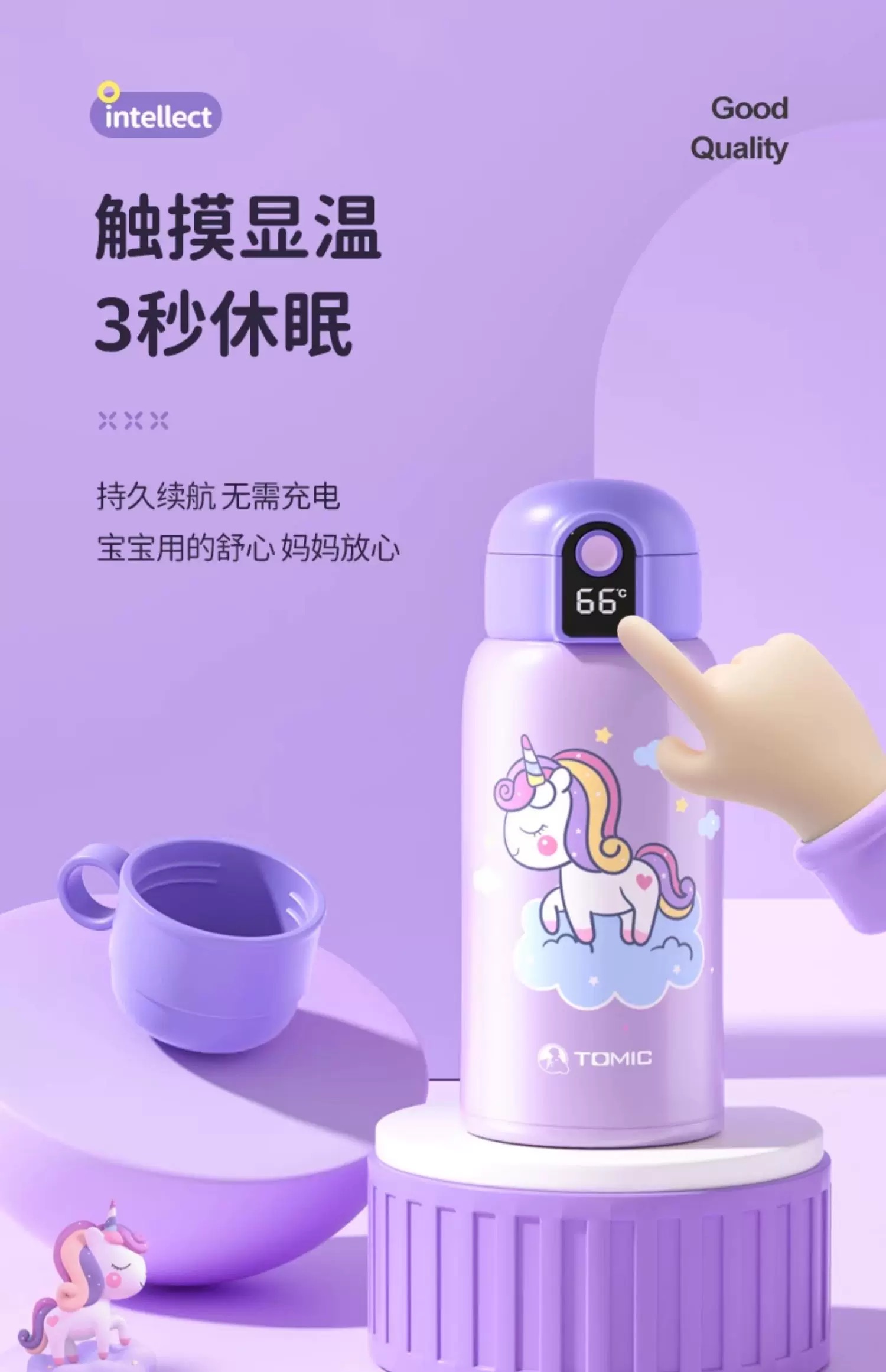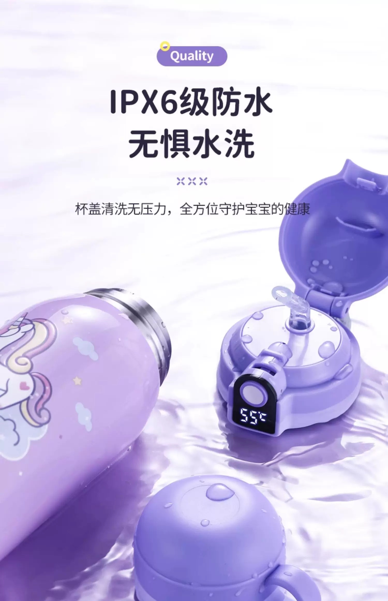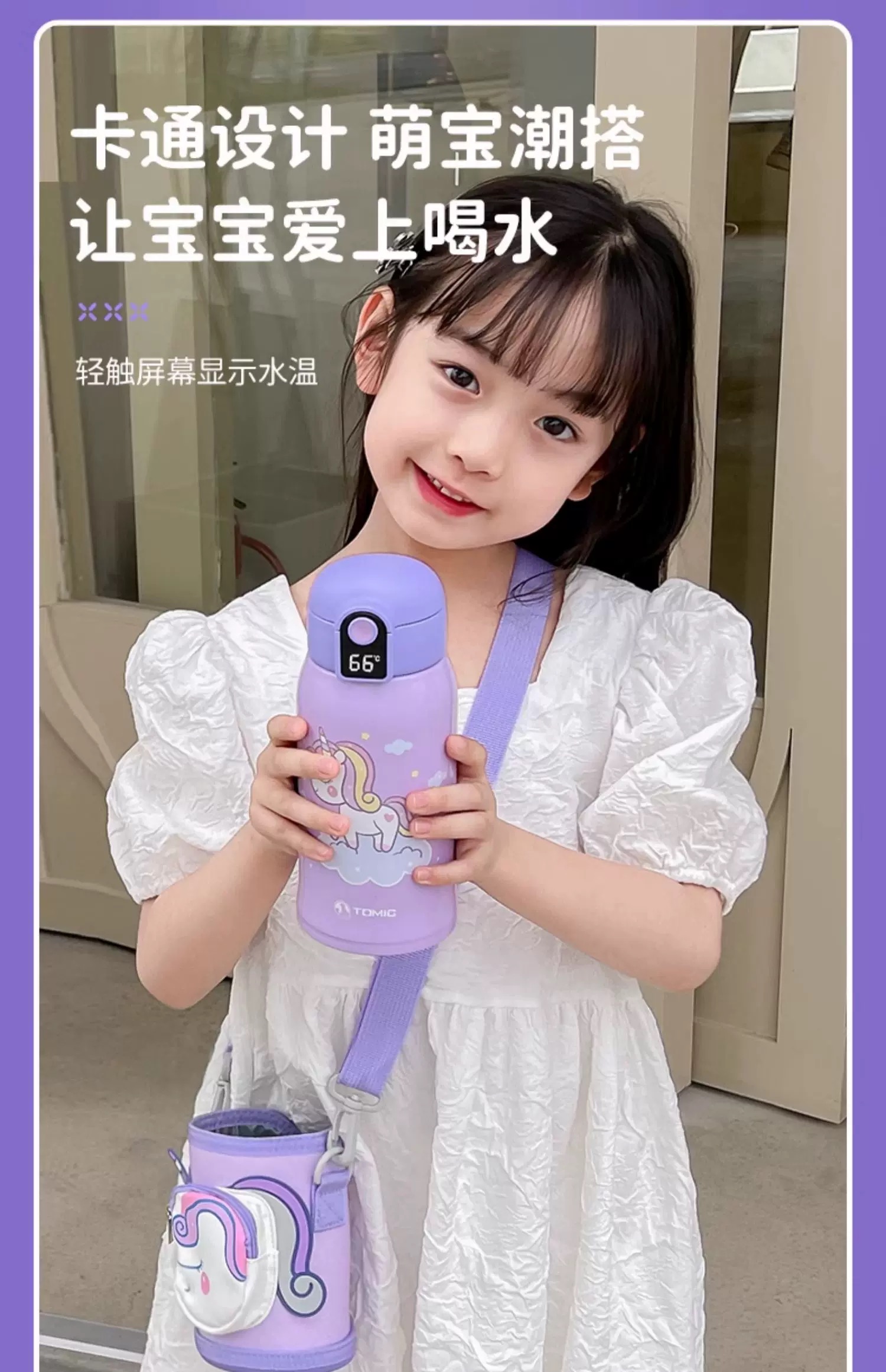 【特美刻儿童水杯】560ml温度可视水杯,显温防烫,送同款背包,出门背着走,一杯双盖,特美刻儿童保温杯男女孩316杯子显温吸管杯小学生水杯上学水壶