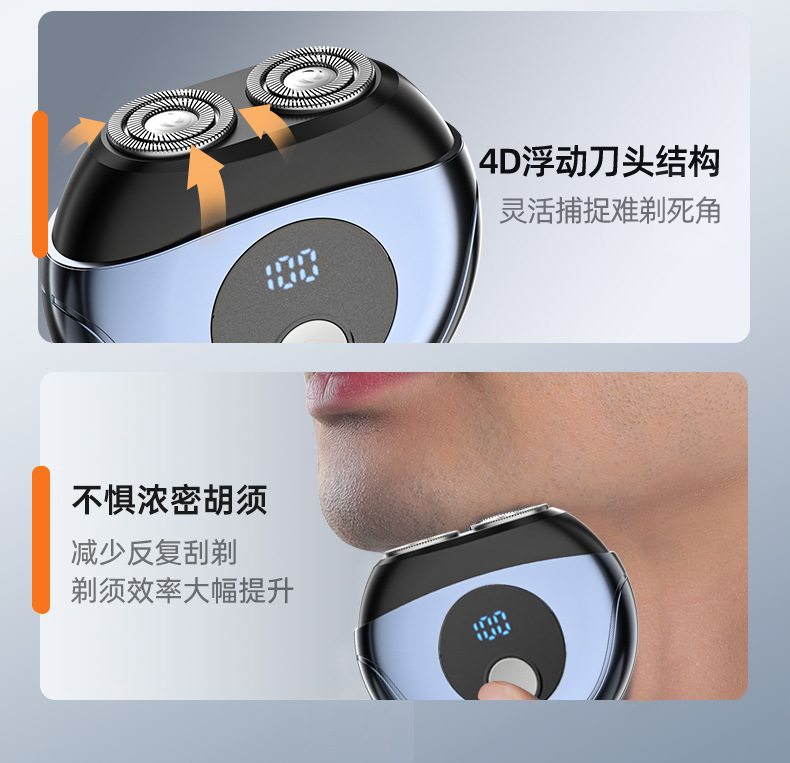 【4D浮动刀头贴合剃须,双引擎驱动硬核动力】电动迷你双头剃须刀家用车载便携男士刮胡刀旅行小巧胡须刀.TA