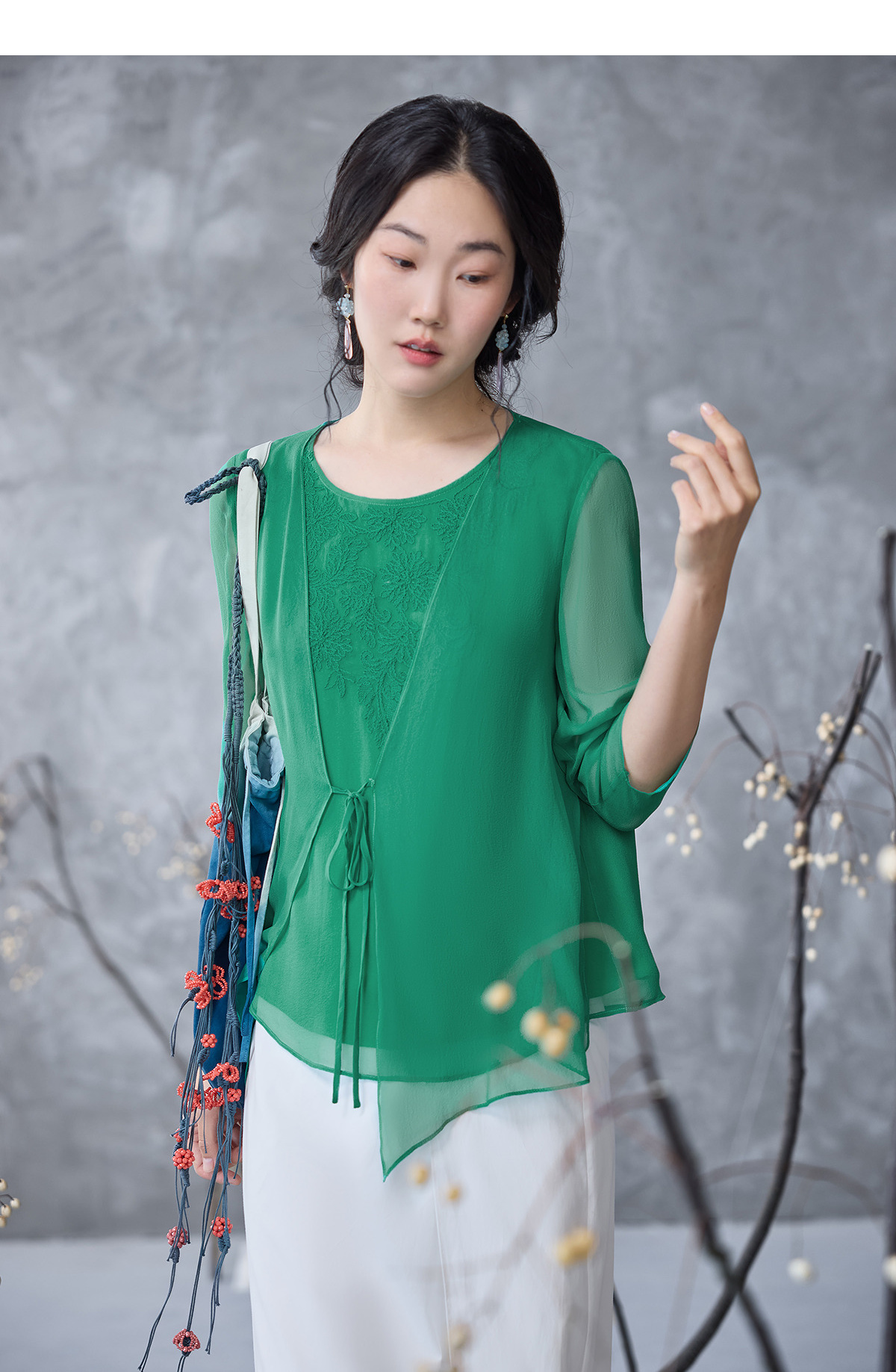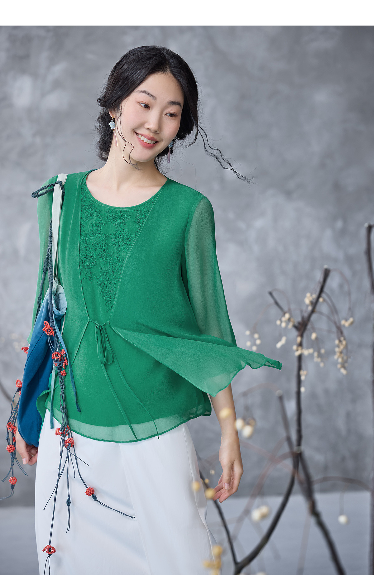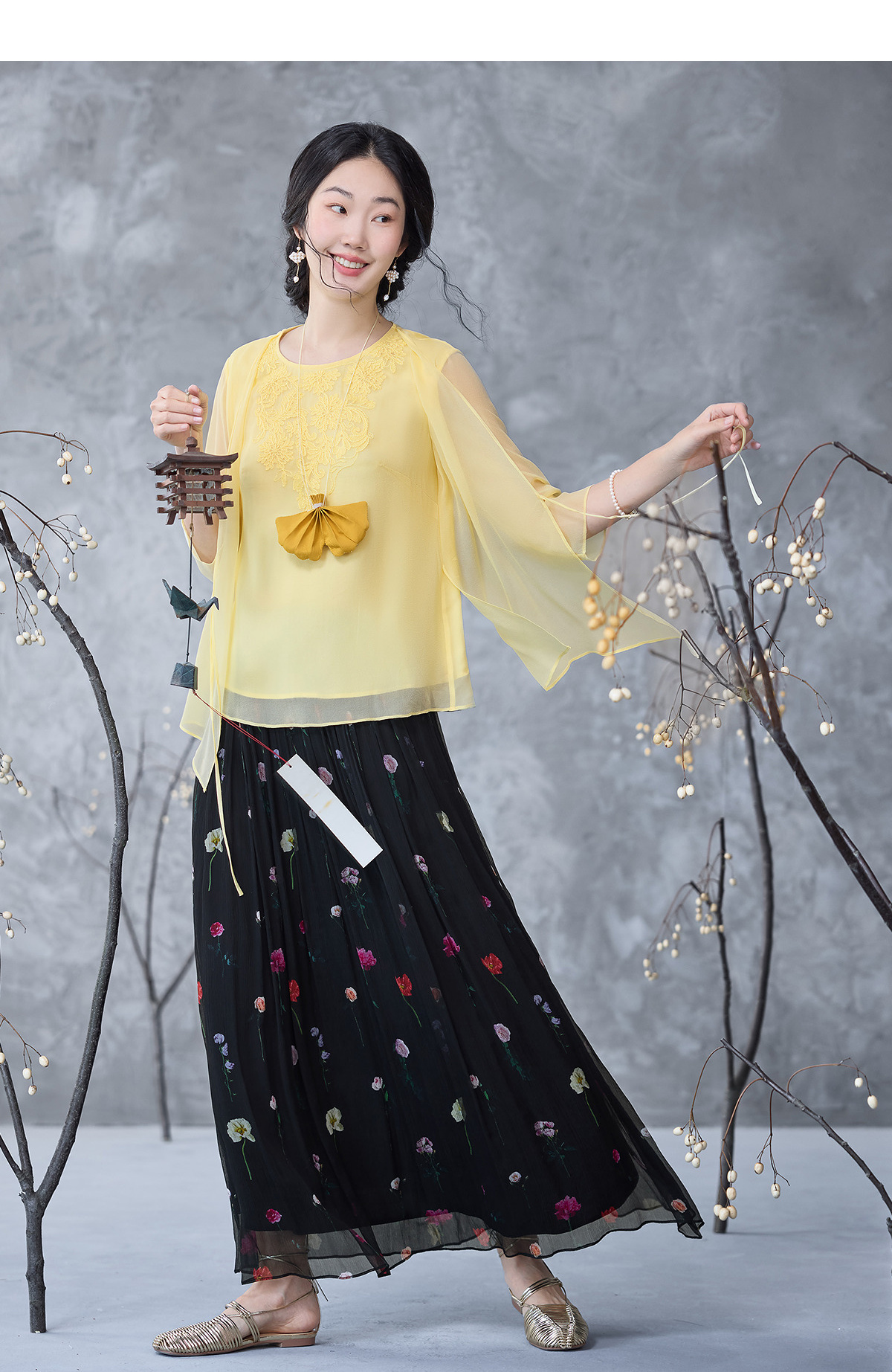 【林栖设计小店】(现货)真丝衫拼飞片盘绳绣花优雅多色2025春夏新品长袖上衣女1952012