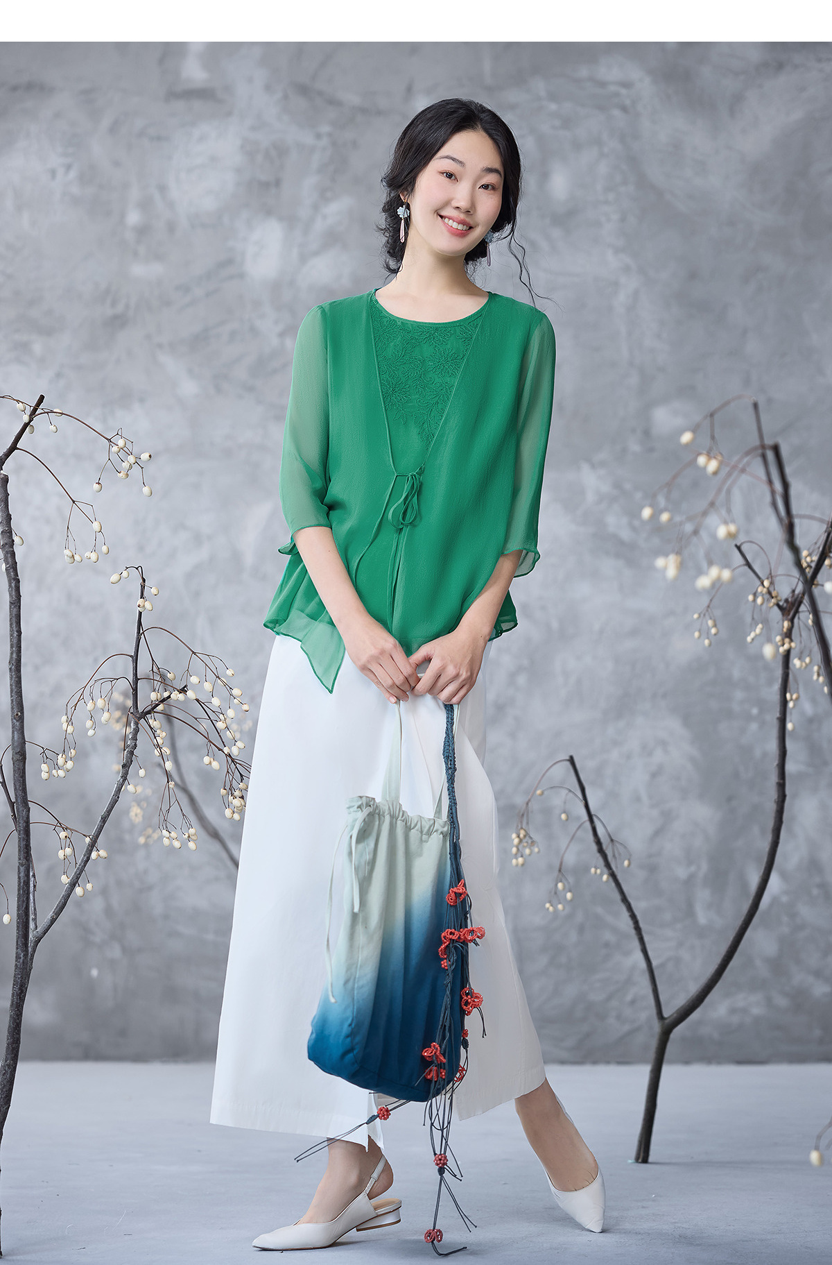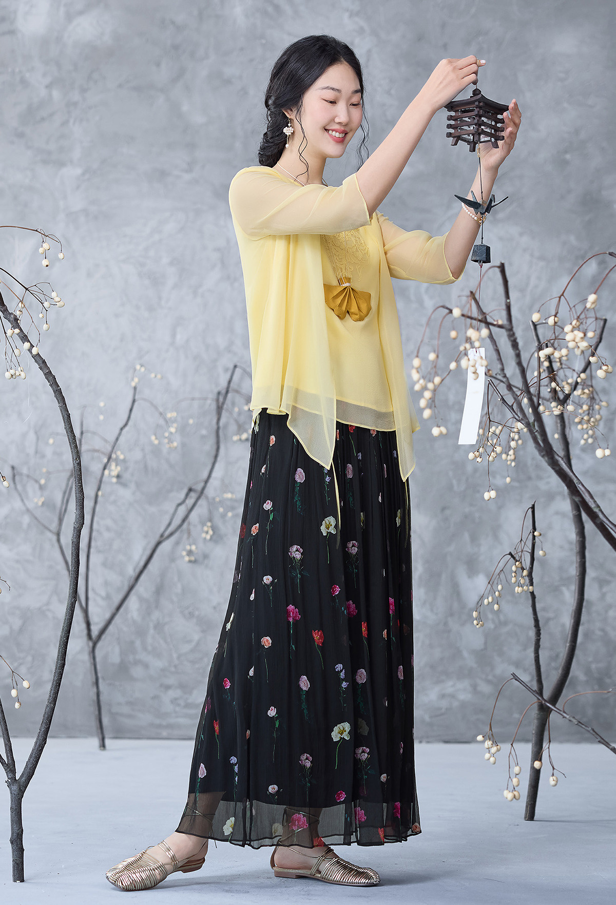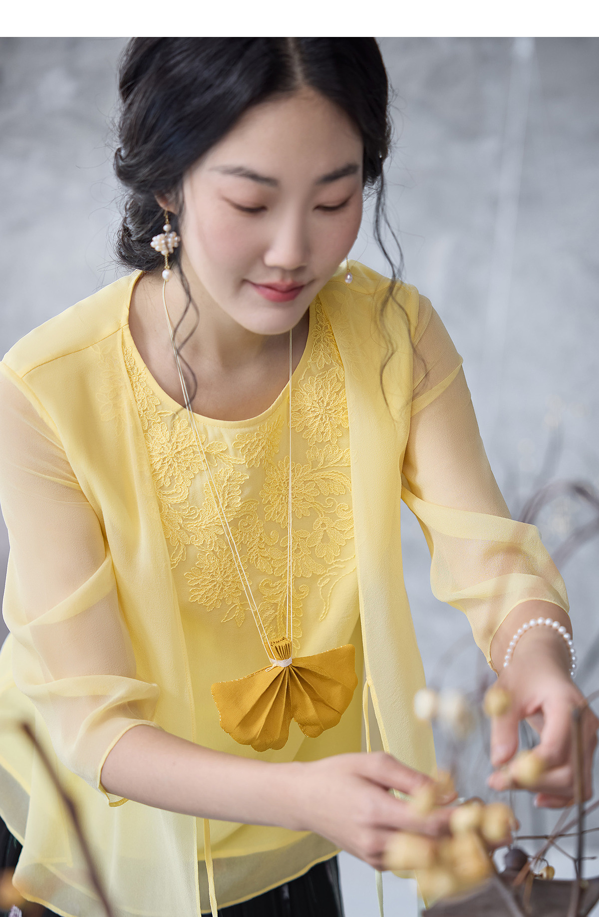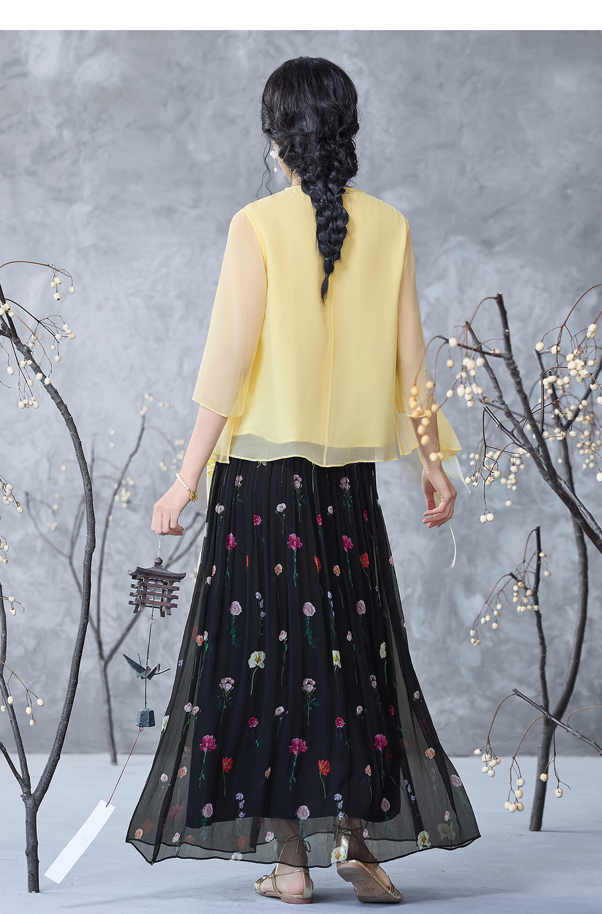 【林栖设计小店】(现货)真丝衫拼飞片盘绳绣花优雅多色2025春夏新品长袖上衣女1952012