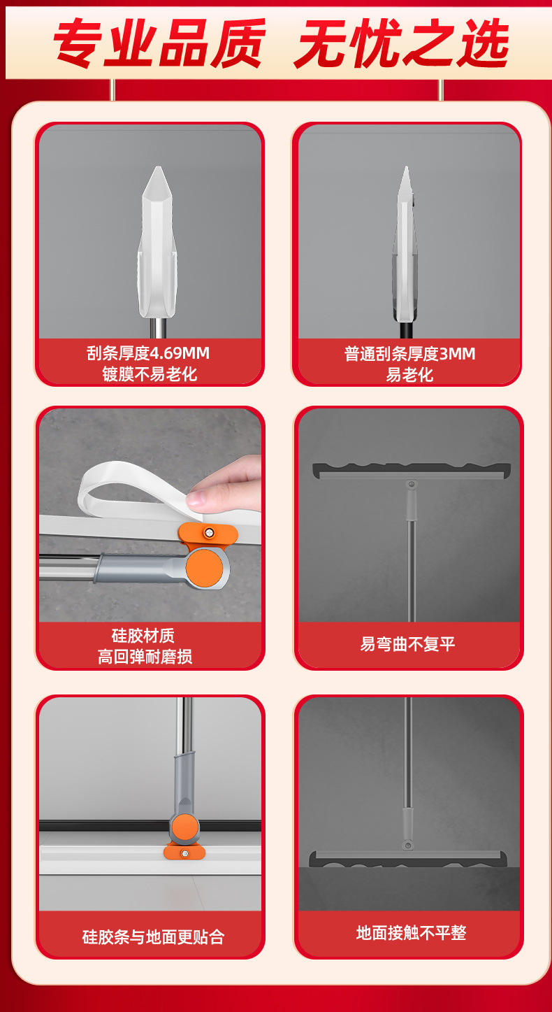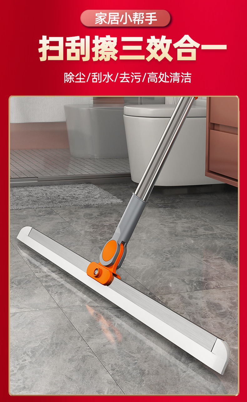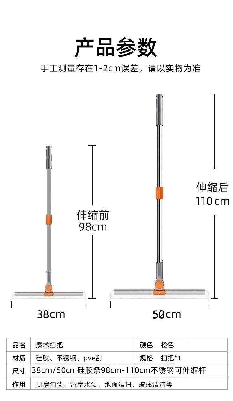 【黑科技魔术拖把】全新升级硅胶+加厚不锈钢伸缩杆,扫、刮、擦三效合一(3-754)