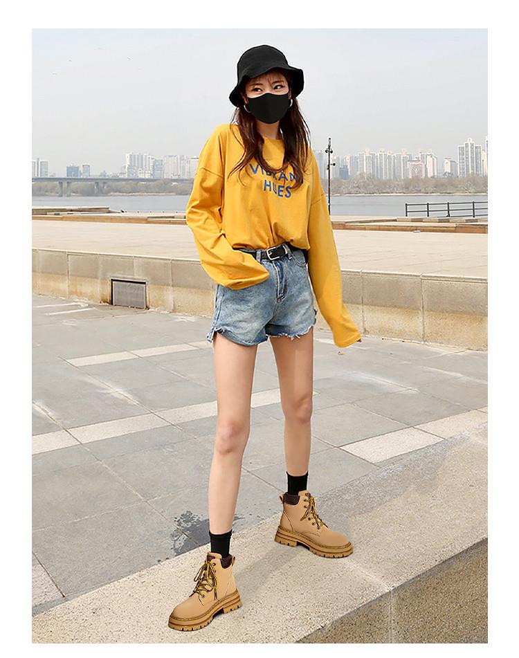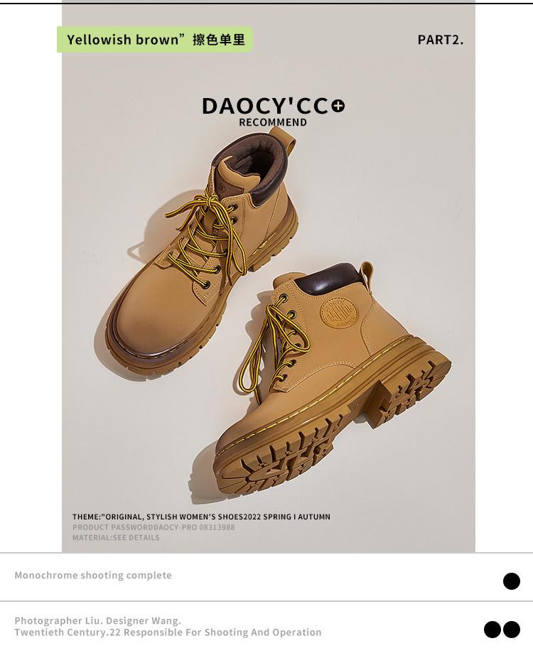 情侣款真皮大黄靴2023新款秋冬季复古女鞋英伦风短靴女厚底马丁靴