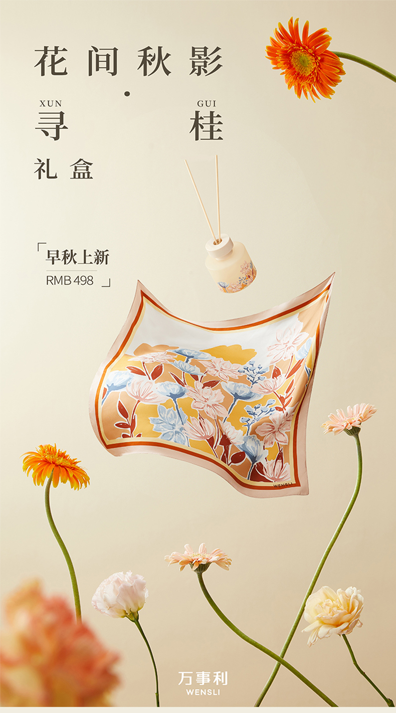 万事利“花间秋影·寻桂”丝巾香氛套装