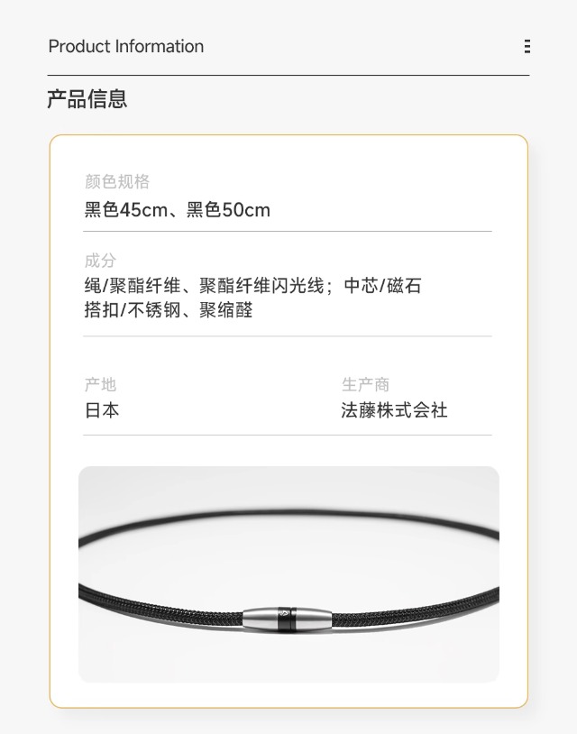 ⁶福利款 通体磁【日本】Phiten法藤 X50亮丝款磁力项链 男女通用 SS06-QTT-FT