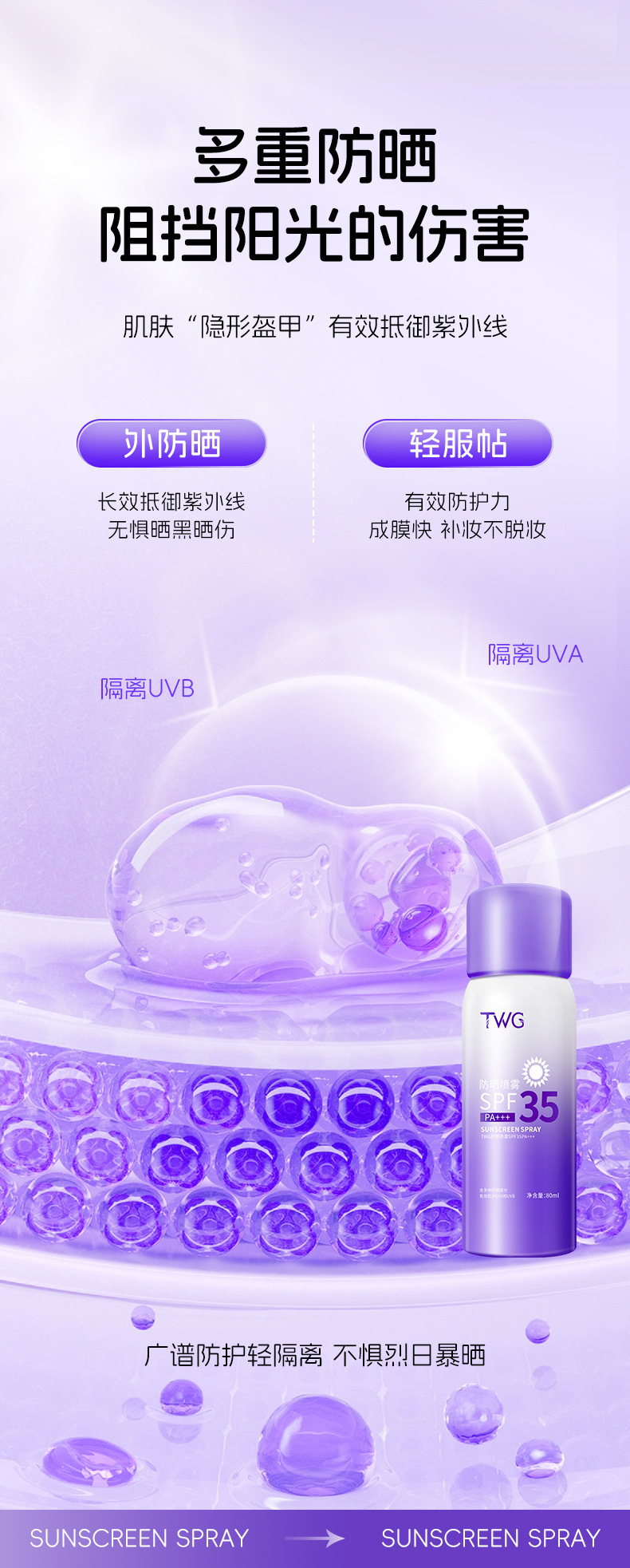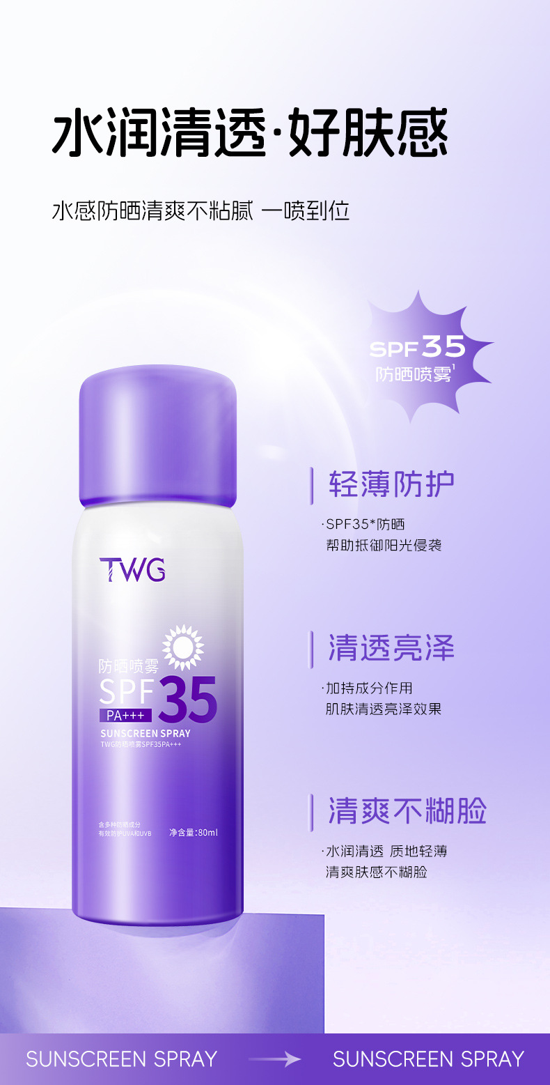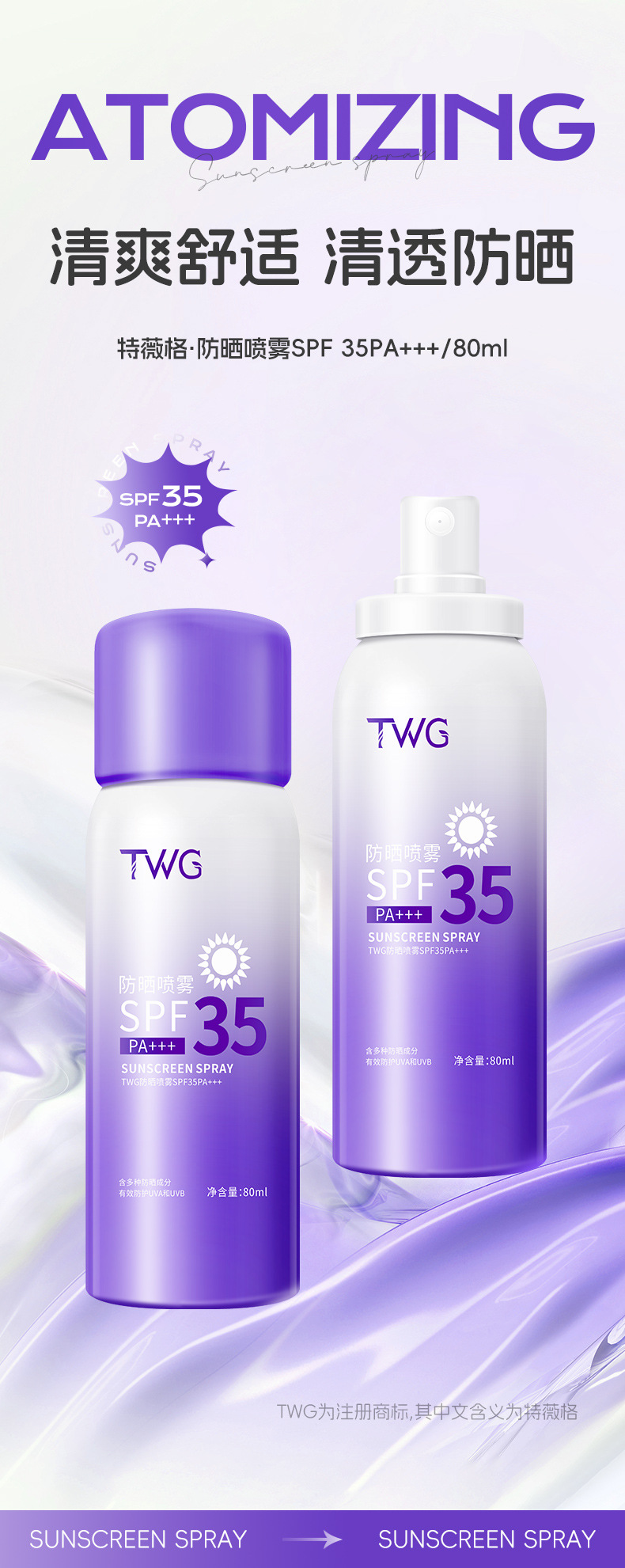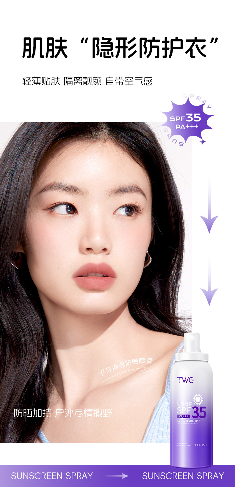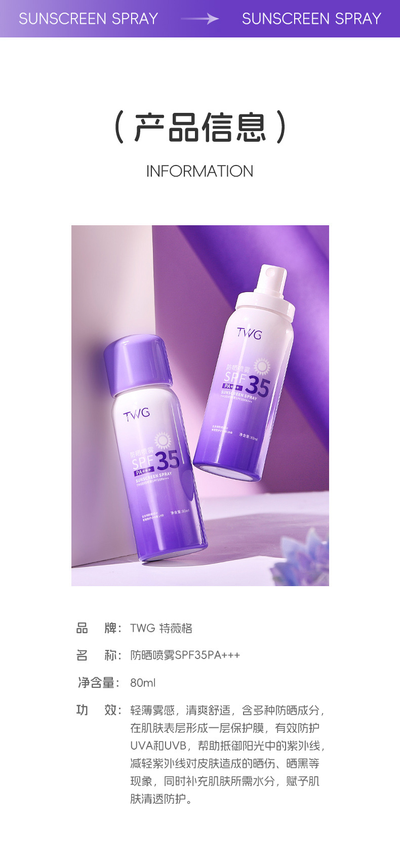 【水感防晒!清爽不粘腻】TWG防晒喷雾SPF35+PA+++防晒乳防紫外线美白高倍防晒隔离喷雾。ry