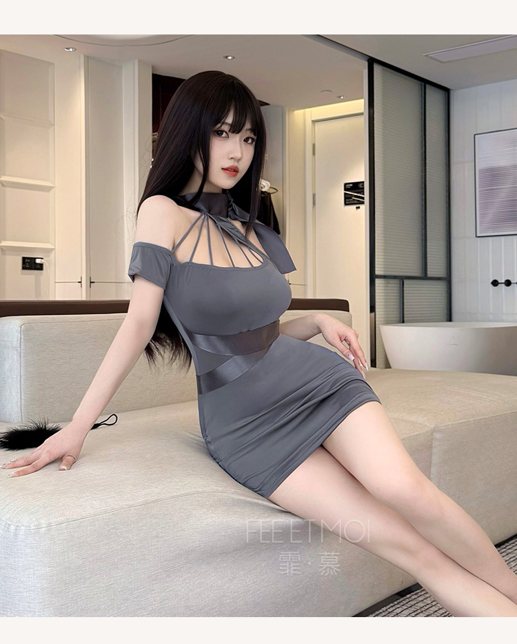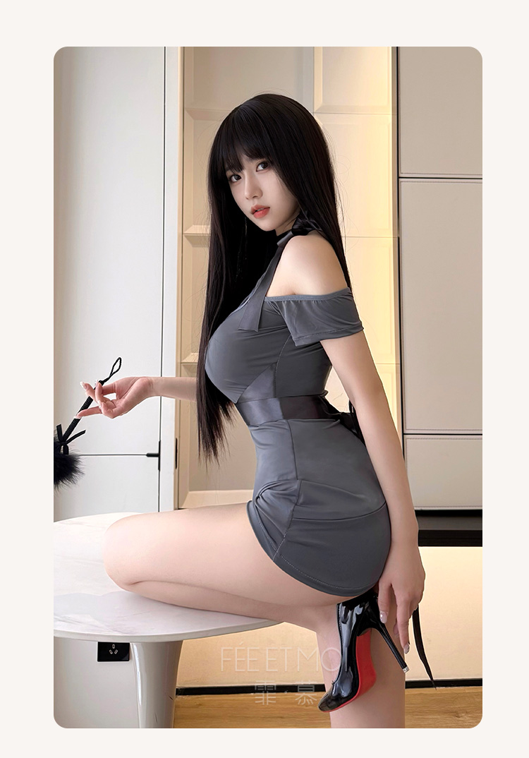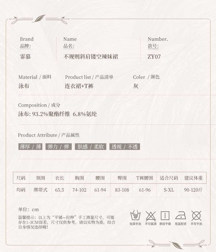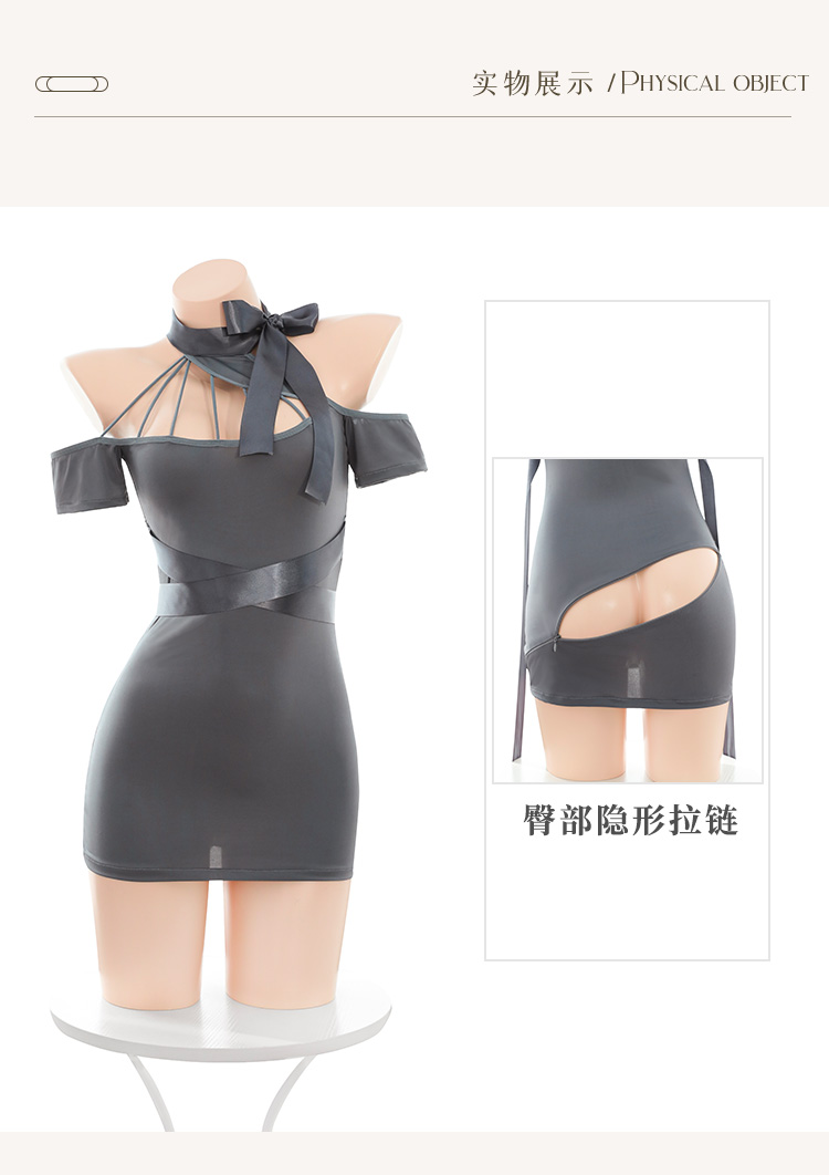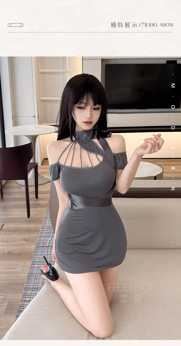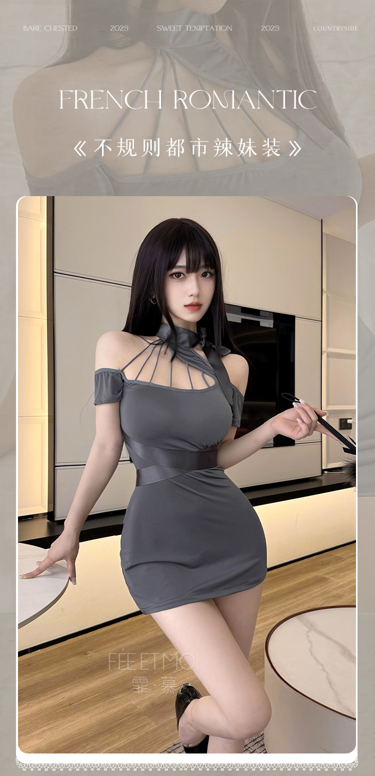霏慕 不规则斜肩镂空辣妹裙ZY07绑带连衣裙性感睡裙夏季流行单品睡衣女