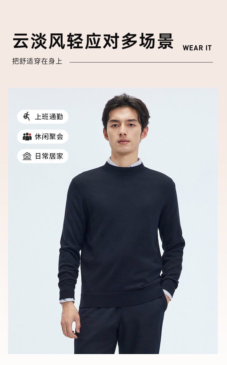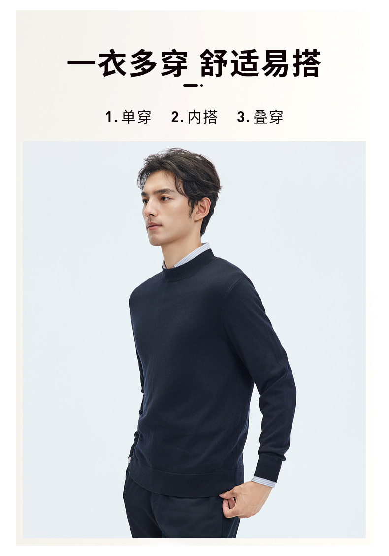 【含绵羊毛】圣得西羊毛混纺针织衫2025秋新款素雅百搭耐穿毛衣男