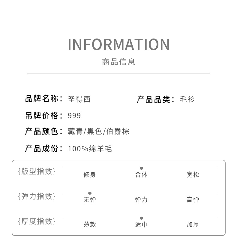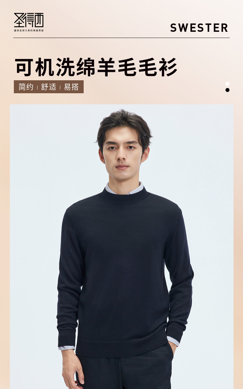 【门店同款&100%绵羊毛】圣得西25年男款冬季毛衫保暖纯色针织衫