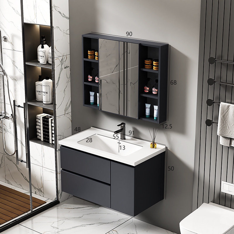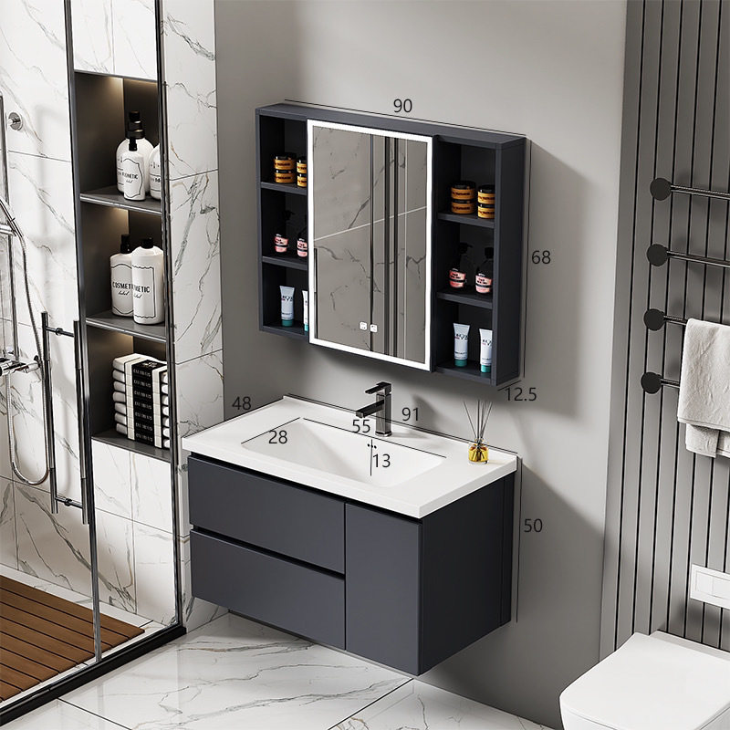 镜柜洗脸盆洗漱卫生间智能实木浴室柜洗手盆陶瓷太空