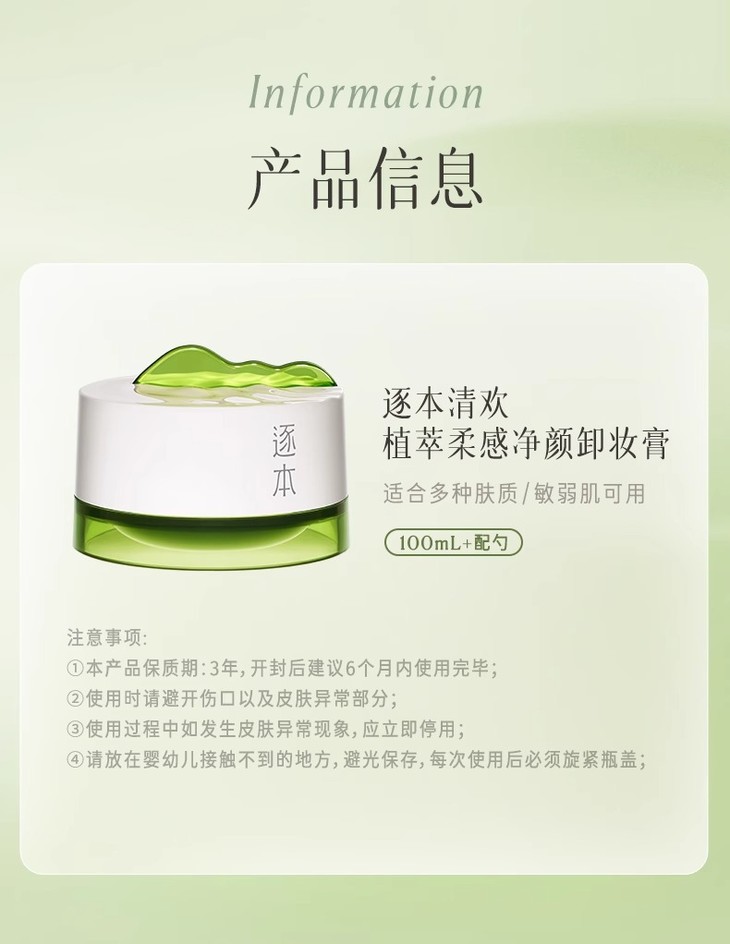 「卸妆清洁护肤三合一,SPA级卸妆体验!」逐本清欢植萃净颜卸妆膏100ml/瓶,面部深层清洁乳化快卸妆油